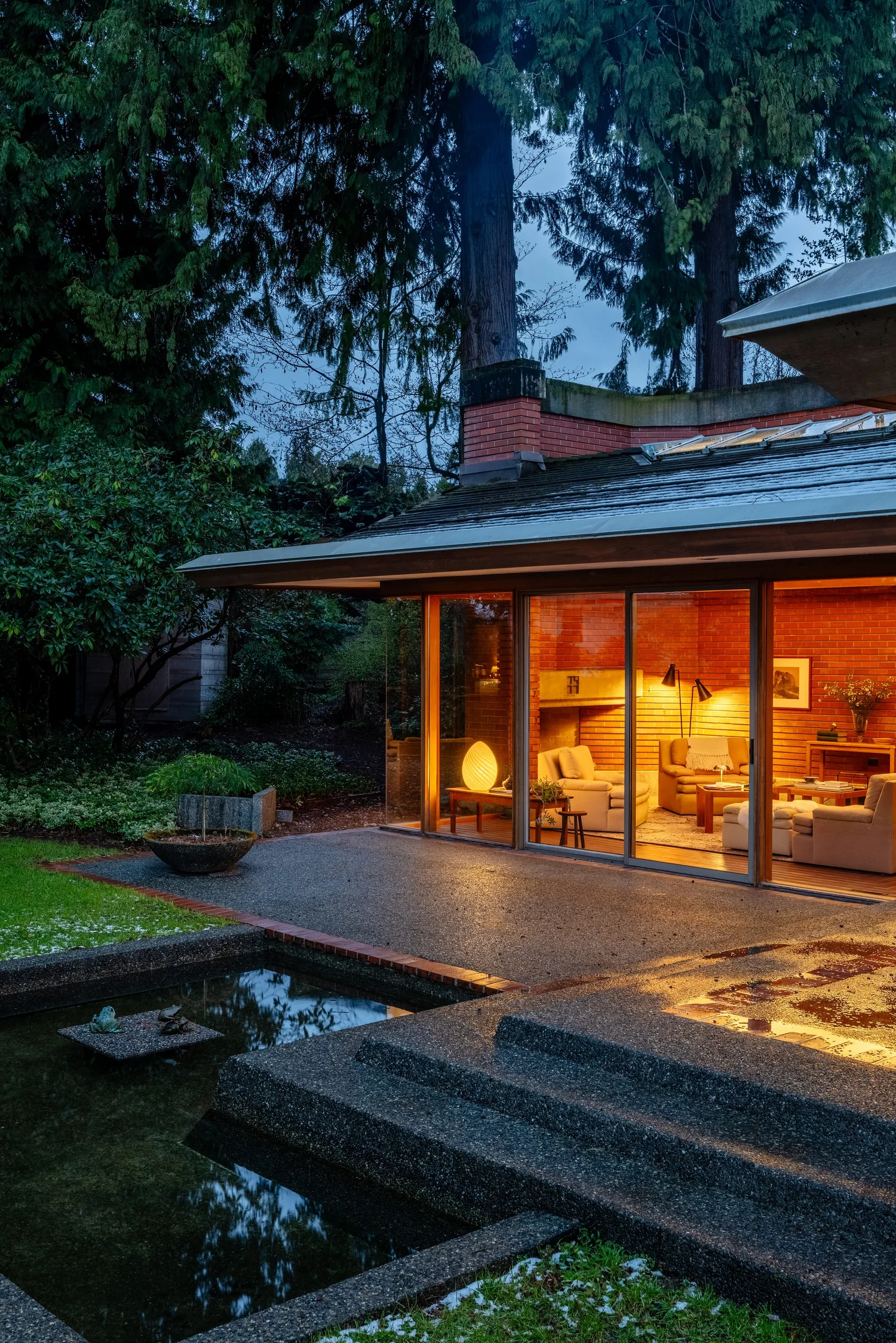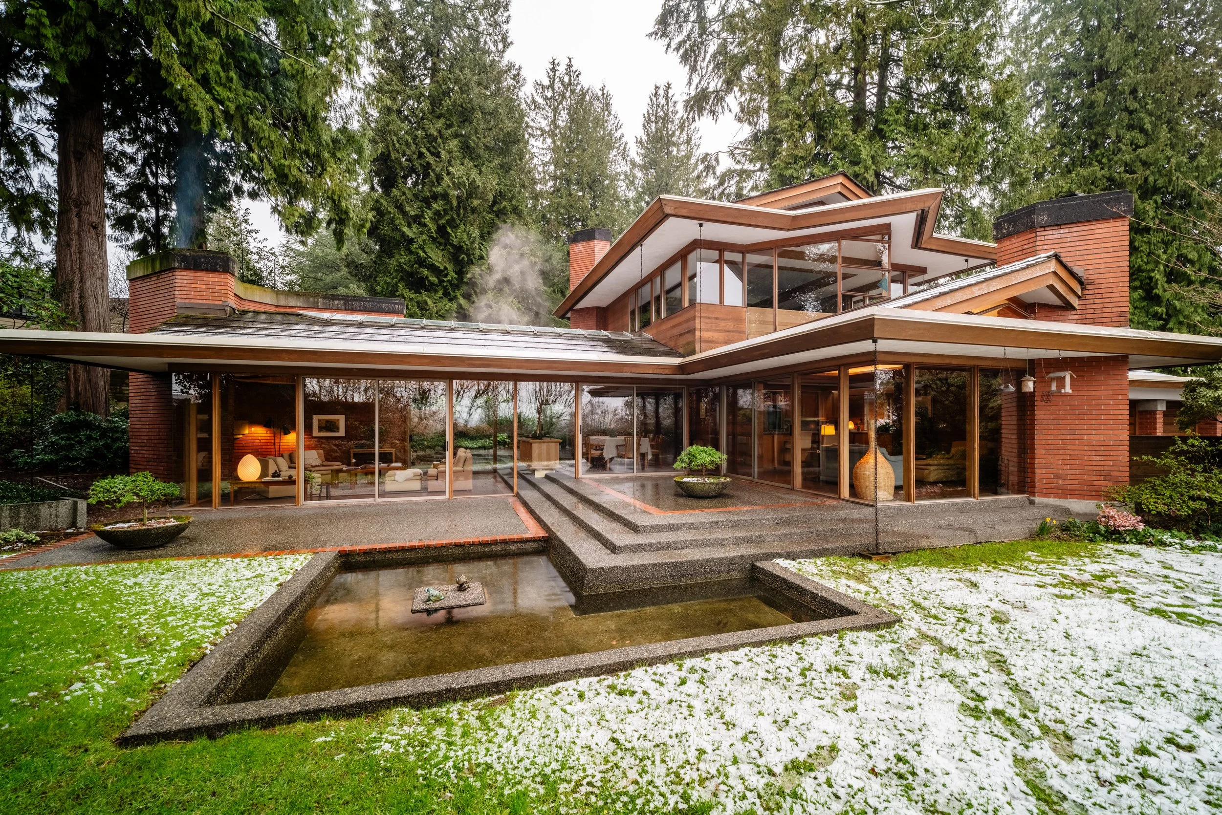At the end of a tranquil tree-lined cul-de-sac in Buckingham Heights in Burnaby, BC, stands one of the most complete expressions of architect Fred Hollingsworth’s West Coast vision. Completed in 1990, the Lakeside House translates the philosophy of organic, midcentury architecture into the language of the Pacific Northwest — cedar, light, and landscape.
