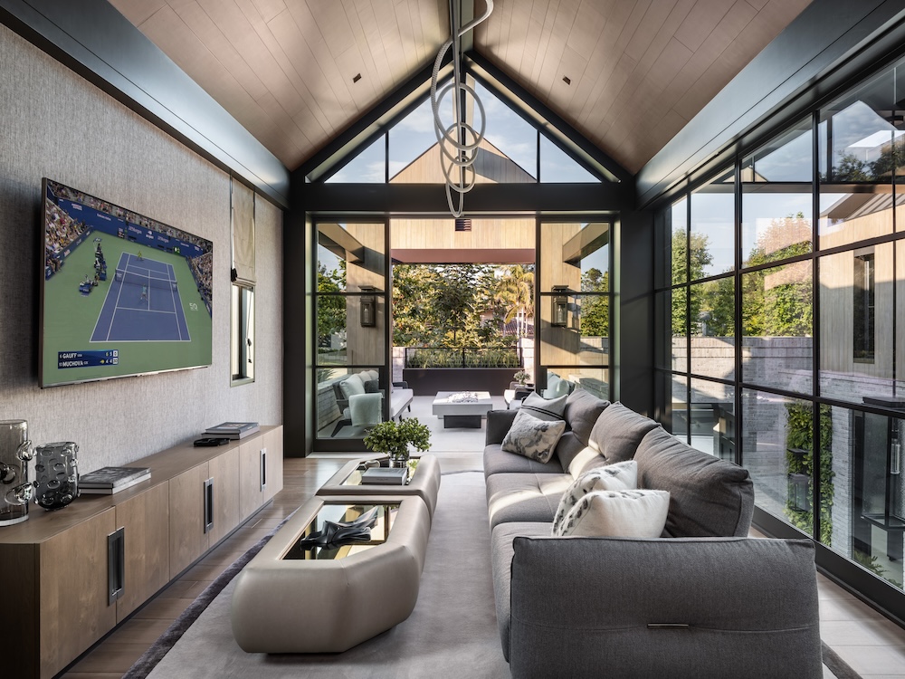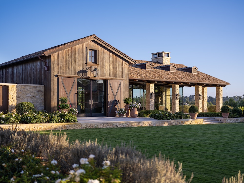 Honored with a Special Award in its category, the horse stable on the property supports an equestrian program for eight horses while integrating seamlessly into the estate’s architecture. Its layout, developed with an equestrian consultant, prioritizes safety, circulation, and the well-being of the horses. High-quality natural materials — wood siding, flat terracotta roofing, and steel hardware — reinforce the building’s connection to the main residence and outbuildings, while reflecting the understated character of California Ranch design. Rubberized pavers provide comfort for the horses, and custom Dutch doors ensure functionality without compromising architectural integrity.