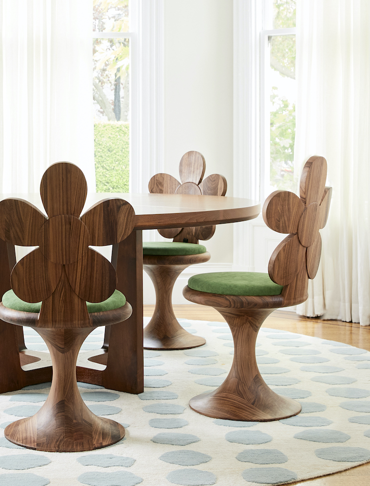 Made in Northern California from ethically sourced materials, including black walnut, white oak and popular re-harvested in the United States, Harrington worked with local furniture makers and artisans to master the sculptural details of the flower petals.