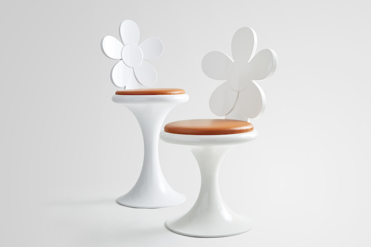 Enter her debut furniture collection, honeydudley, a vibrant — and certainly joyful — take on custom modern furniture. The line’s signature offering is the Daisy Doo Chair, a custom-made chair or stool with a large, daisy petal-shaped back.