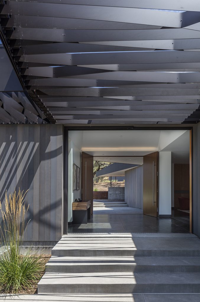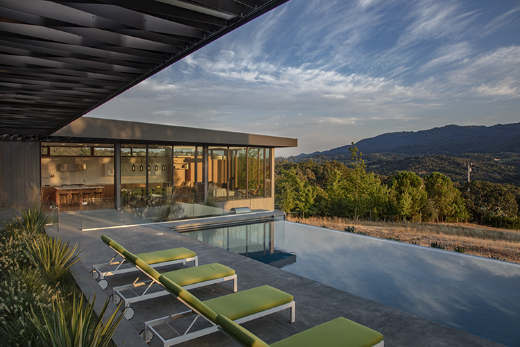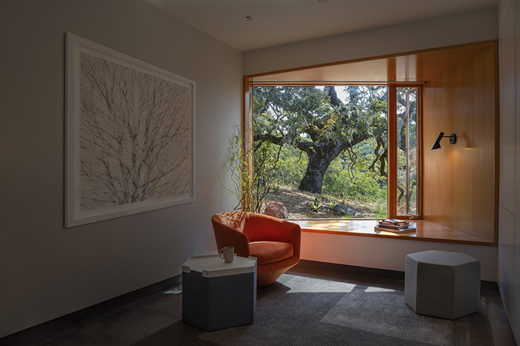 Atop the rolling hills of California’s Sonoma County lies a home inspired by its environment. From the grandeur of a miles-wide view down to the intricate pattern of a lace-like moss growing off oak trees, The Lichen House embraces this site.