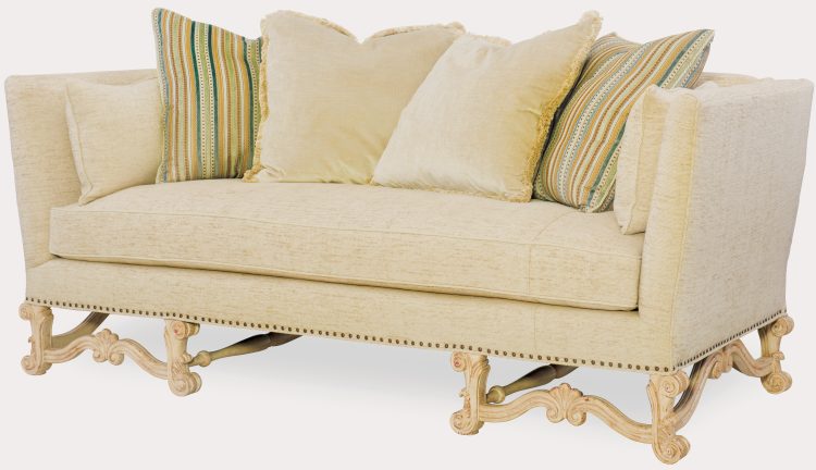 Walker Sofa | “Decorative details adorn the wood base of this dreamy sofa. Love the nailhead adornment for the finishing touch.”