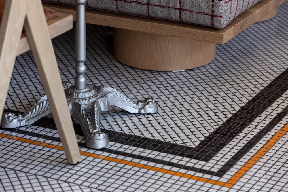Lumo, designed by YOD Group, was inspired by modern Italy, or rather a mix of its various cultural facets. Mosaic tiles, check patterns, and textured veneers refer to the Memphis group that revolutionized Italian design in the 1980s. The project uses Alpi veneer, whose original design was created by the founder of Memphis Ettore Sottsass.