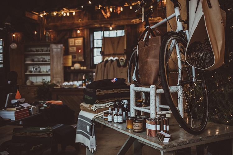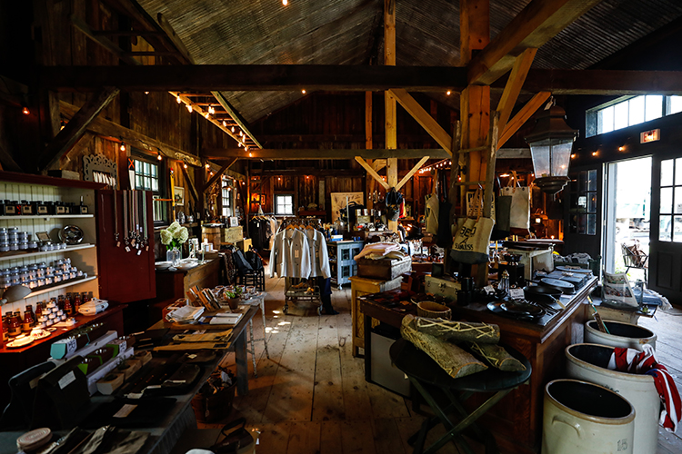 The couple’s second store, the Black Barn, opened in High Falls, NY in November of 2016 as a pop-up for the holidays, and then reopened the following spring. Very different in look and feel from the NYC store, McMillan describes it as “a general store, but less about food and more about apparel and home goods – all ‘Made in America’, of course – with a good deal of antique furniture curated by our partner Ron Sharkey of Field and Barn, and other treasures.”