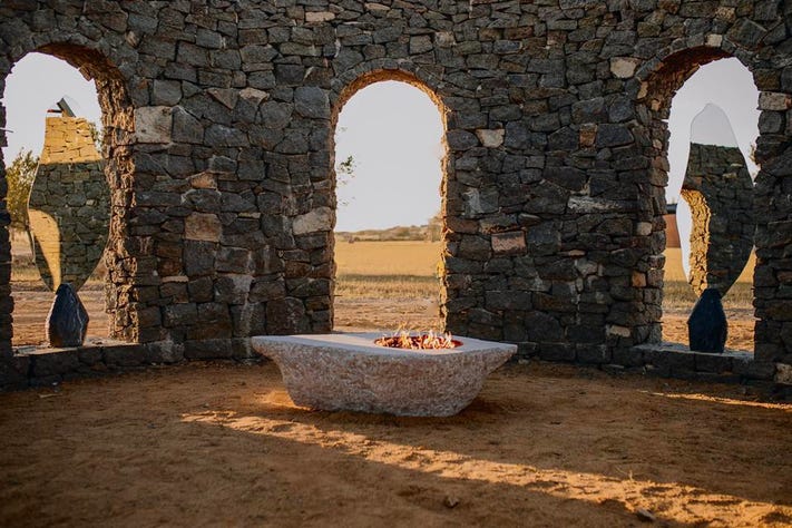 Prometheo Uno, a sculptural fire pit, is inspired by the myth of Prometheus. It portrays the place where fire first appeared, in which Prometheus gave humans as a gift. The stone is a memorial to the rock where Zeus sentenced Prometheus to hold the stolen fire for all of eternity.