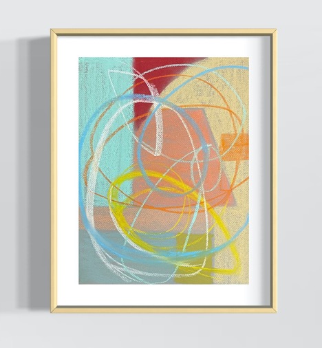 Pastel on paper is one of the main mediums Anne works with. Non-objective in nature, shapes contrast with freeform curved lines in this painting, which create a play with color and form.