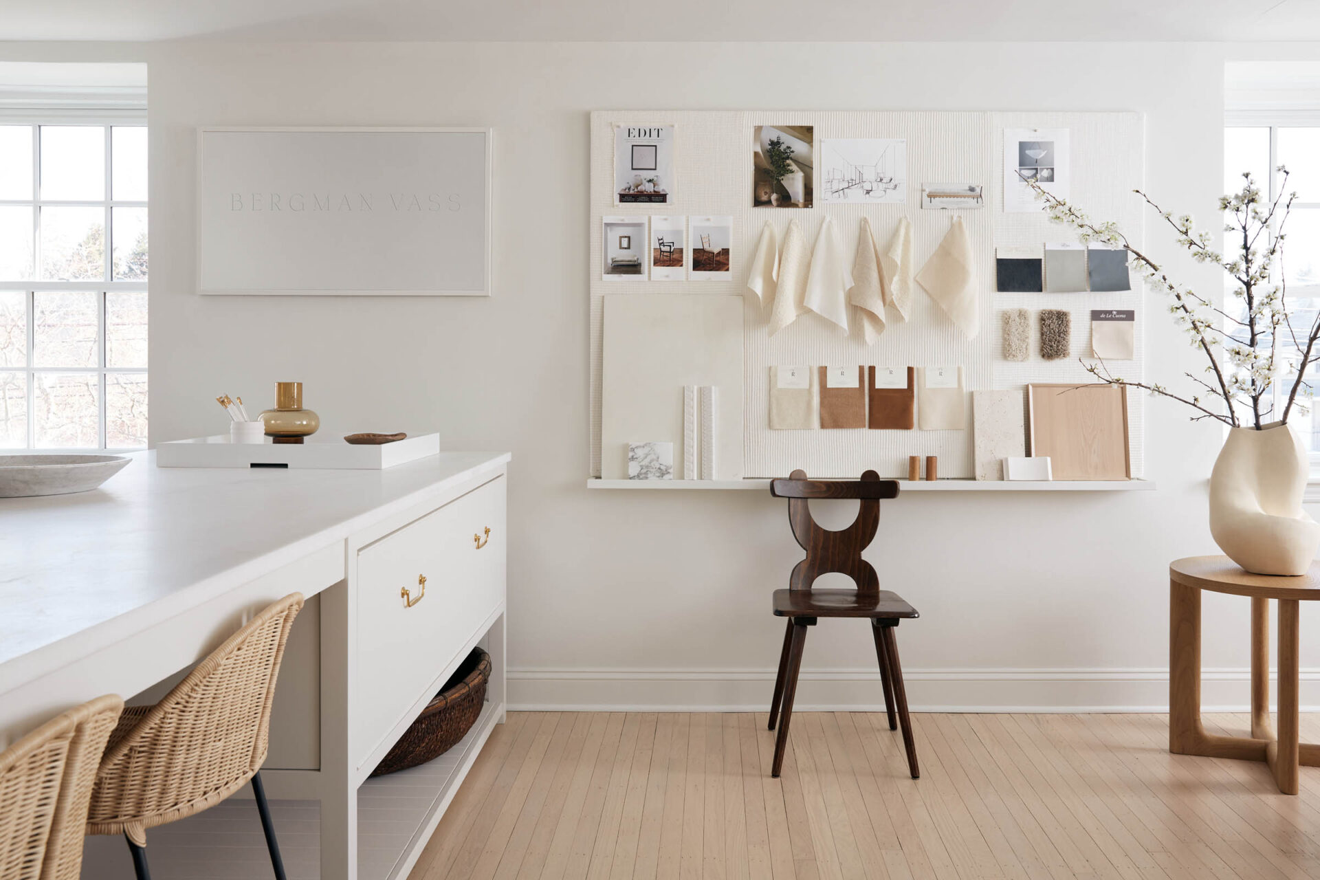 Dana Bergman Falcione: Many of our projects gather inspiration from the architectural style of the house as well as the setting. We approach a new project with these aspects in the forefront, along with our clients’ desires for how they plan to live in the house. Concepting is the most exciting phase for us, and Erica and I spend a lot of time together creating and editing the mood board. We refer to these boards throughout the course of the project to ensure we stay true to the original plan. It’s very easy to get distracted with new images constantly popping up, and we encourage our clients to refrain from looking at Instagram once we settle on a design.