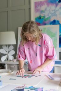 About the Maker | Eager to advance her design knowledge, Cassie Adams left a job at an art gallery and began working for a small interior design firm. After honing her skills as a senior designer, she decided it was time to integrate interior design into her company’s offerings. To further her education, she attended Parsons for an Associates Degree in Interior Design where she revisited painting and discovered a passion for collage. She even transformed her stationery designs into textile prints. While completing her studies, she worked to build her brand, taking on interior design clients both in the New York area and her home state of North Carolina. However, Cassie knew that her art was what made her happy. With encouragement from her family, she focused on her gift for creating and embraced her calling as an artist. Possessing a flair for weaving the traditional with the unexpected, Cassie has created a unique style that’s classic with a modern sensibility. She believes passion, confidence, imagination, and the ability to listen define the distinction between being a good designer and a great one and uses those principles to guide her. With her husband and two small children by her side, Cassie continues to cultivate her brand, helping clients achieve what she calls “the happy perfect.”
