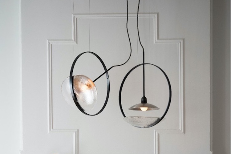Lorek’s background in live theatre inspired her Surround pendant, a minimalistic design, akin to a ghost light, that captures light in a reflective glass disc.