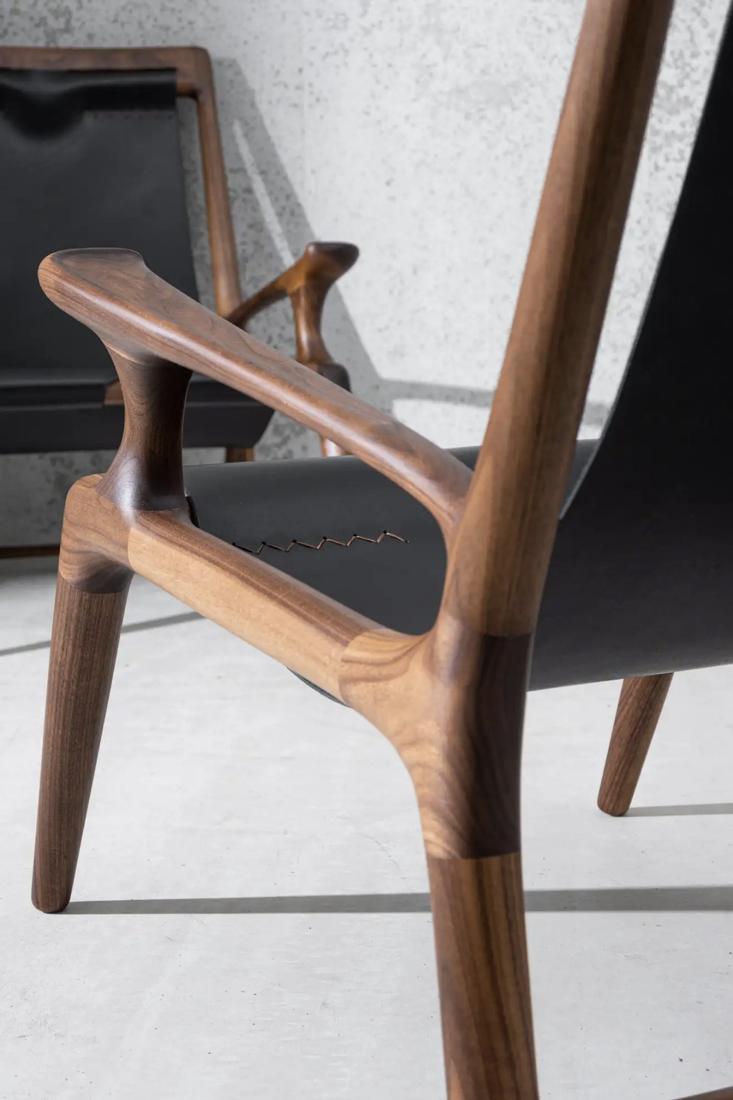 This Sling chair is made from high quality Walnut, White Ash or Charcoal Ash wood.