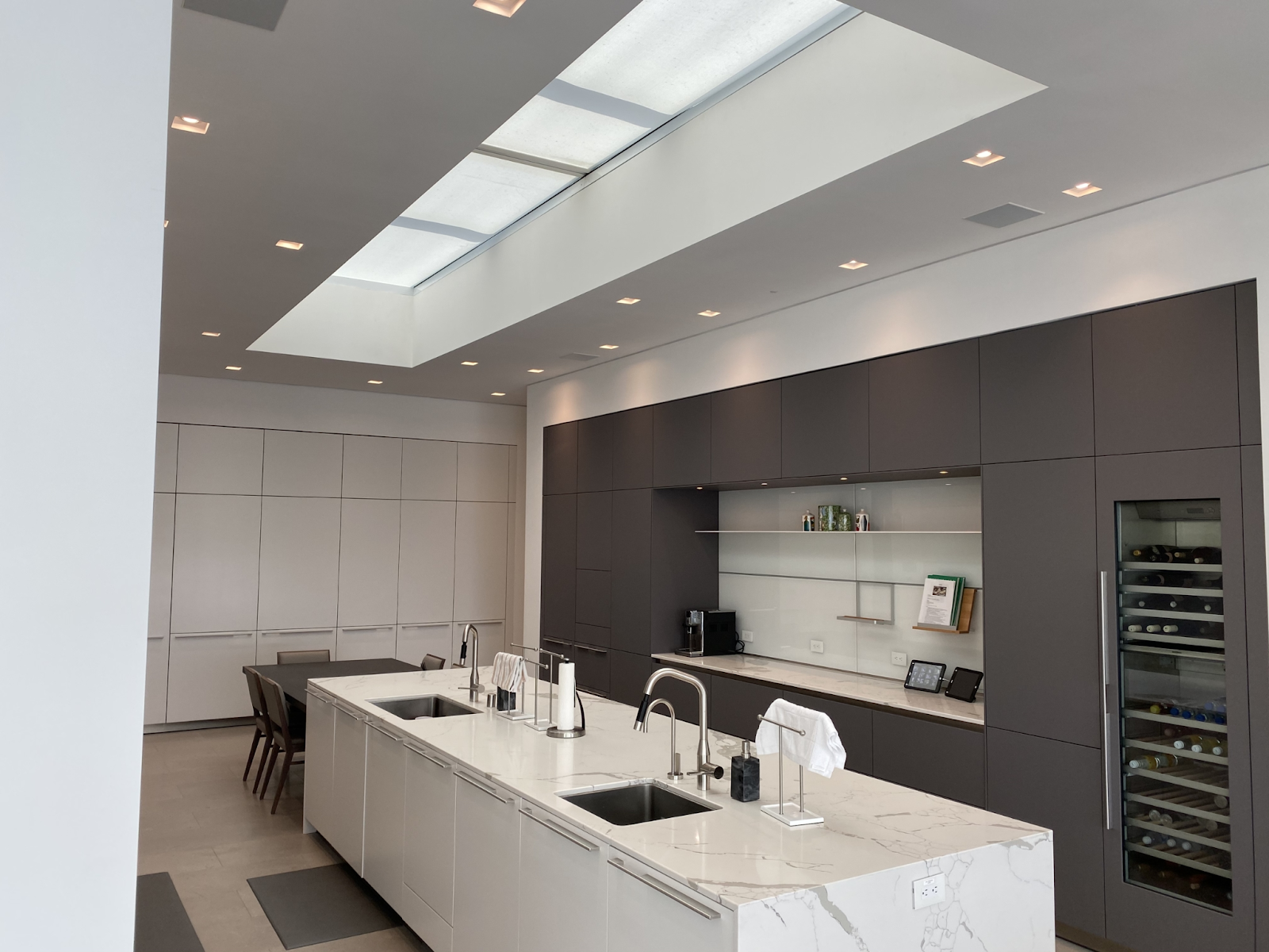 Seamless fixtures create a clean, minimalist ceiling design, eliminating visual clutter for a sleek and modern look.