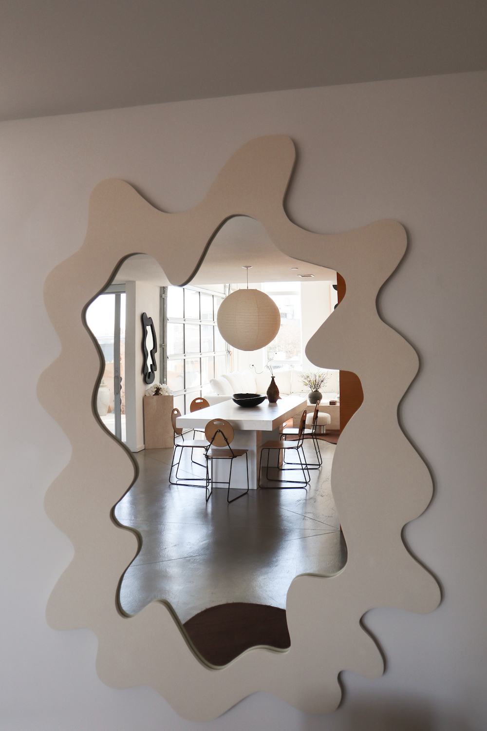 Hannah Polskin: I create undulating shapes set in stark contrast to their surroundings. In a mostly neutral color palette, I aim to bring spaces to life with motifs that have a natural movement and energy to them. I love the relationship between art, decor, and the overall context of the home and specifically work with materials like Birch and Burl wood to create a connection to nature indoors.