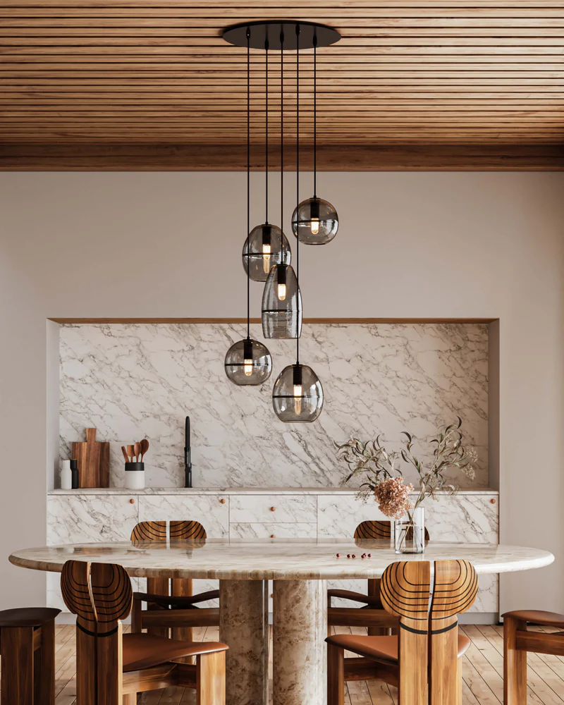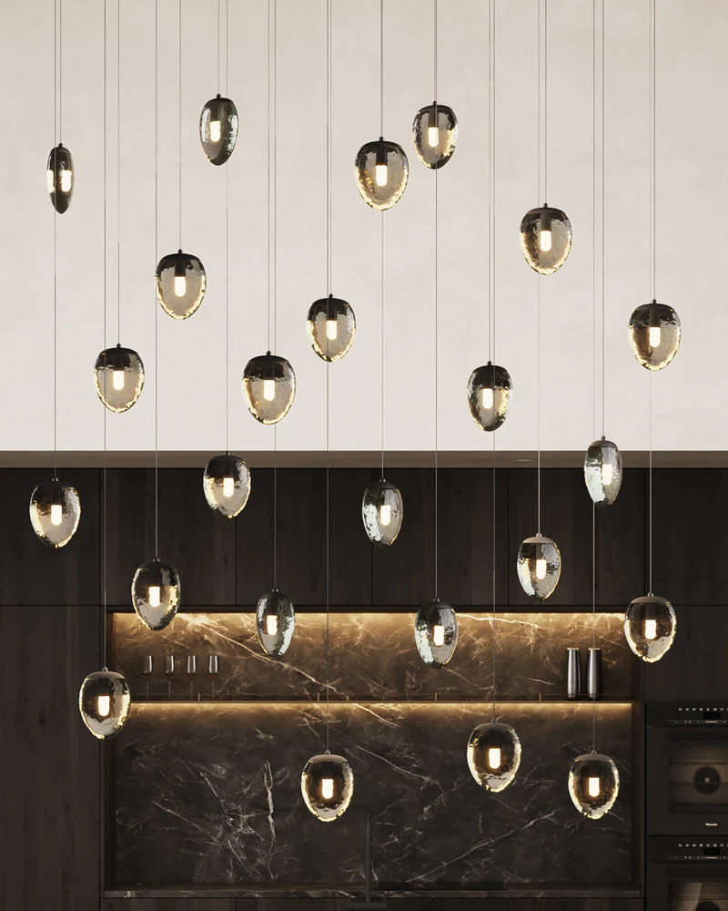 The Foliole Collection reimagines a leaf form, with a flattened shape that textures the glass and softly diffuses the light.