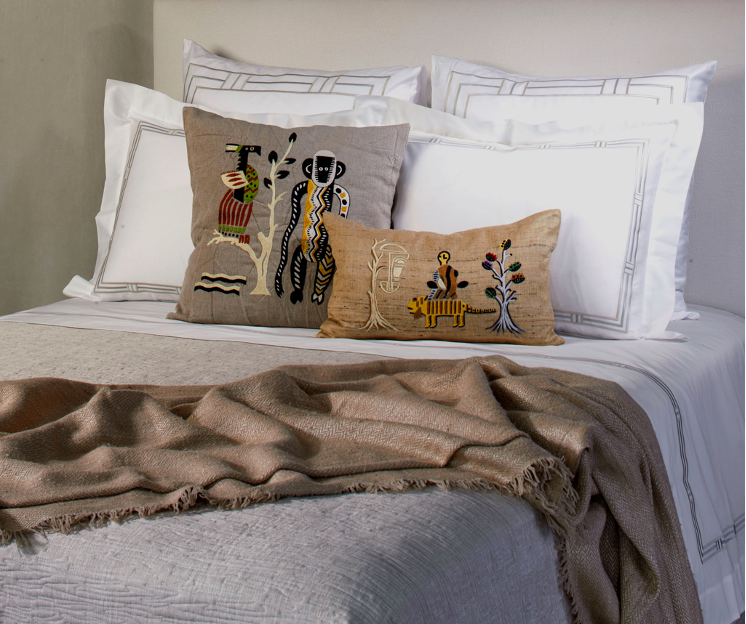 LB: Many of the projects I work on are in complement to a design that is already in place as I often collaborate with interior designers for residential and hospitality clients. Based on the overall and individual room aesthetics, I design and curate motifs and decorative accents for bedding, bath, table, and entire linen programs that are engagingly part of the interior storytelling.