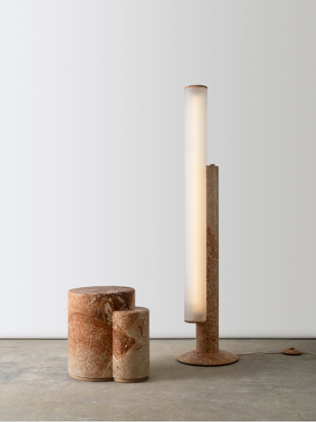 Featured here are two new pieces, one stool and one floor lamp, from Swell Studios. Stone, wood and glass are common materials for Mike White as he draws inspiration for his works from his natural surroundings.
