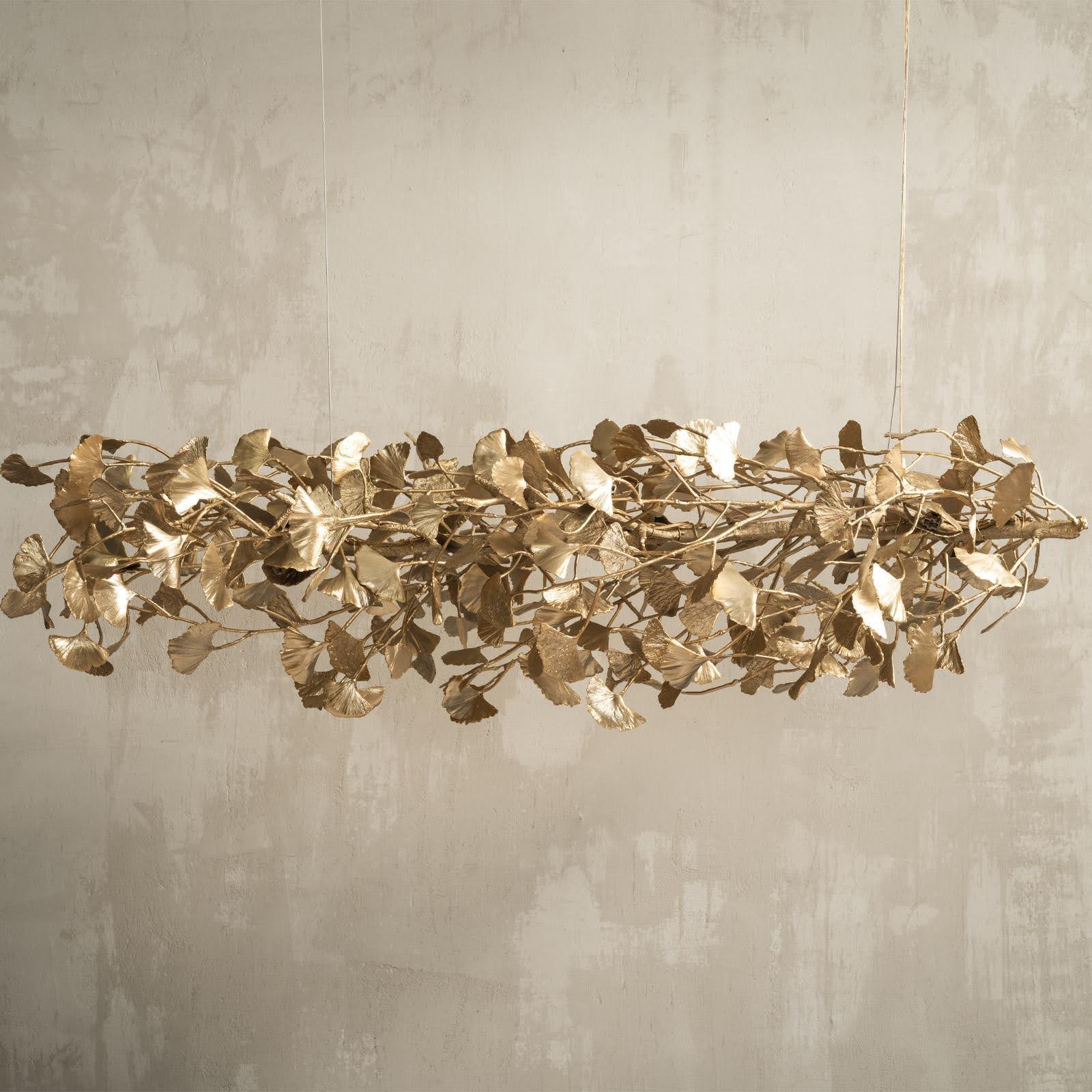 The Ginkgo Chandelier is inspired by the harmonious duality of sunlight and shadows and symbolizes Yin and Yang.