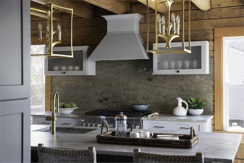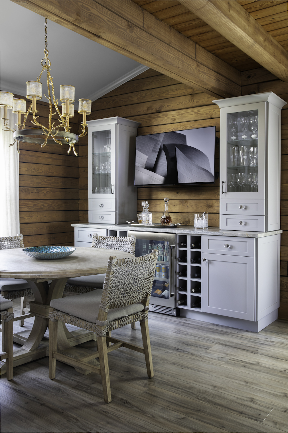 Clients’ wish list: The clients wanted to transform their authentic log cabin kitchen and dining area from a dark, outdated space into a bright, modern and well-designed environment. Their goals included adding contemporary style while celebrating the cabin’s original character-filled aesthetic.