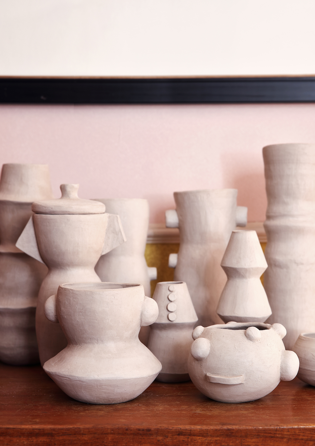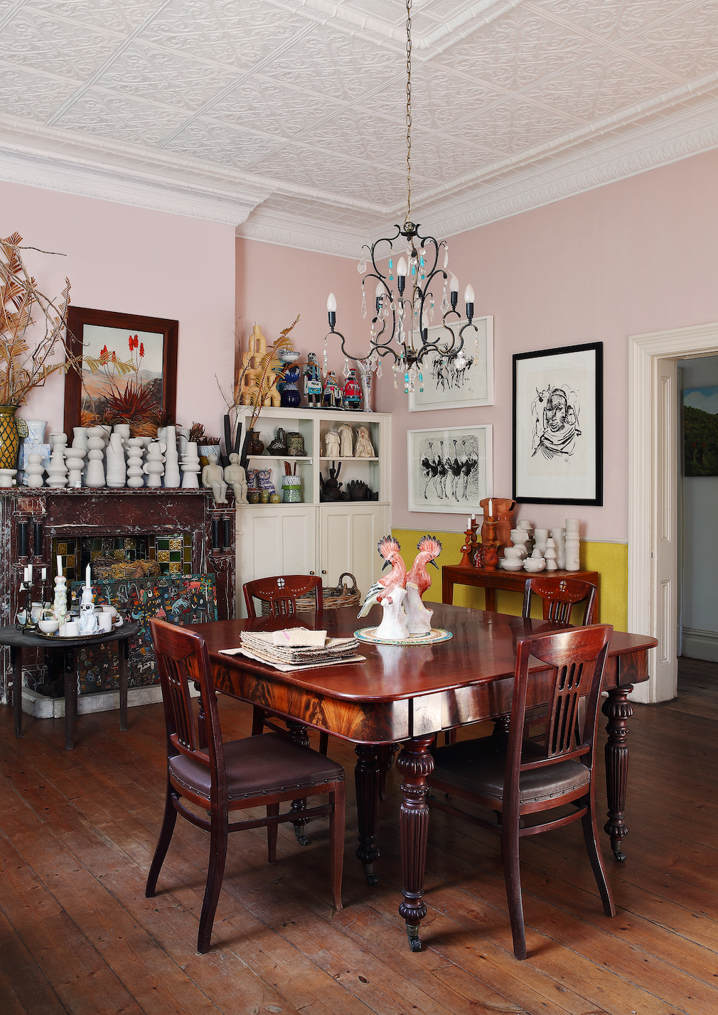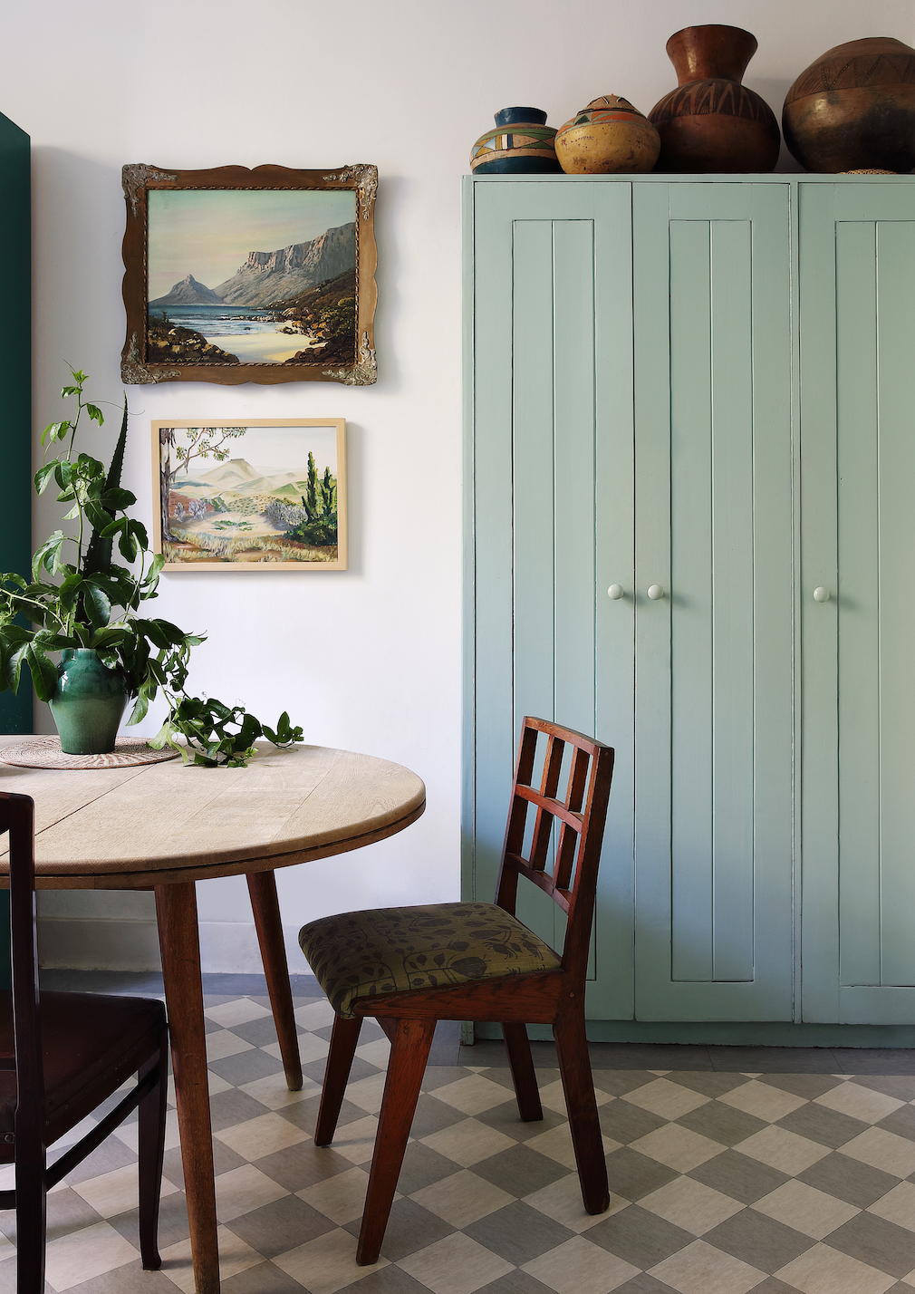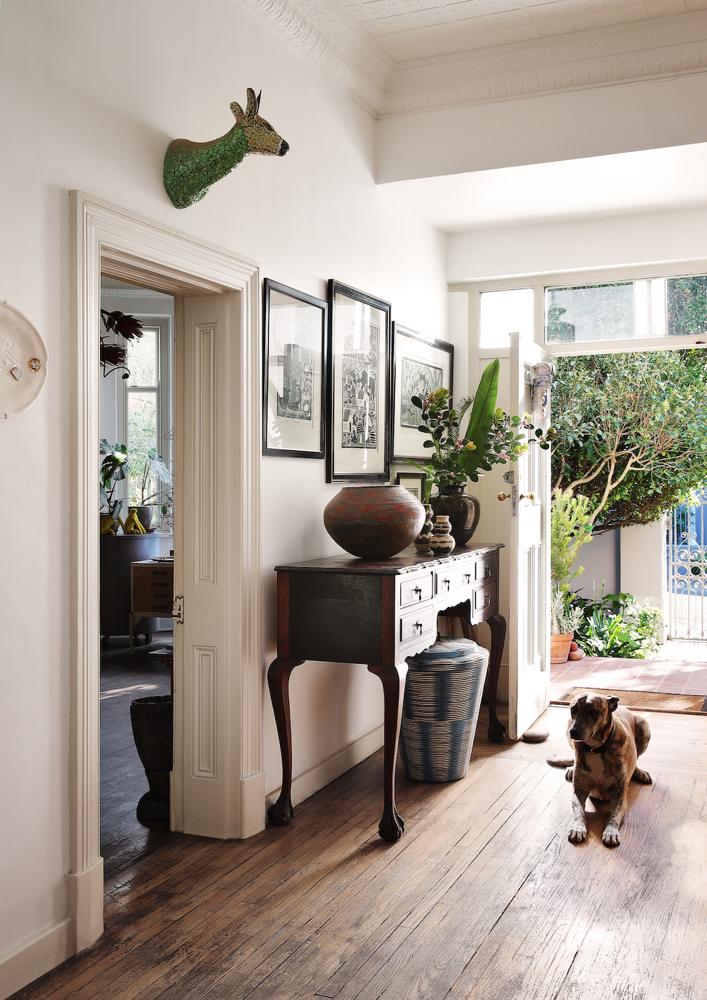 The characterful dwelling, a grande dame with its thick walls, voluminous spaces, restored sash windows that allow in tons of light and original detailing such as pressed ceilings, has proved to be the perfect foil for Woermann’s lifetime collection of (mainly) African art, craft, found ephemera and pieces she has made herself. And while each room is quite different, each is defined and therefore connected by her talent for assembly and display. “It feels a bit odd to me when people use the word ‘curated’ for how the house looks,” says Woermann. “Really, I think it’s quite haphazard,” she laughs. “It’s just evolved and become fuller the longer I’ve lived here.”