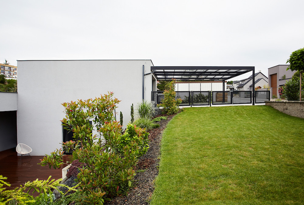 Located on the outskirts of Beroun, the site of this family home has a specific character – with significant slopes leading from the access road to a belt of mature vegetation, and neighboring houses tucked in closely on either side. The main challenge for architect Markéta Bromová was therefore to deal with the differences in height and orientation to create a private sanctuary that works in harmony with its surrounding environment.