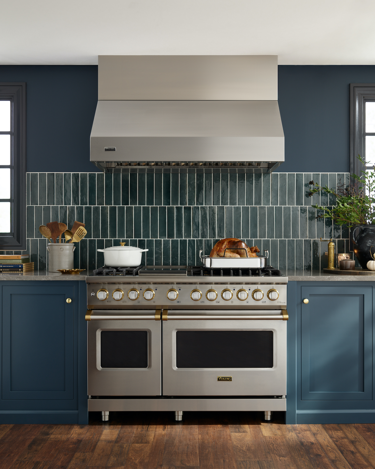Viking introduces new brass accents such as handle endcaps, knob bezels and the brand’s iconic logo, adding refined and contrasting details to their already timeless 5 Series ranges. Through Middleby Residential.