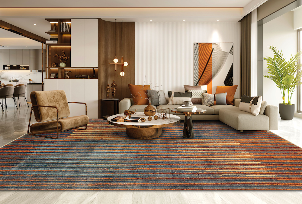 Through an artful blend of bold colors, the Brio Rug Collection offers eye-catching works of floor art. These dynamic designs are inspired by the age-old Leheriya textile dyeing technique from Rajasthan, India. Blending irregular colorful stripes and chevron patterns gives these statement rugs an added sense of depth and visual appeal.