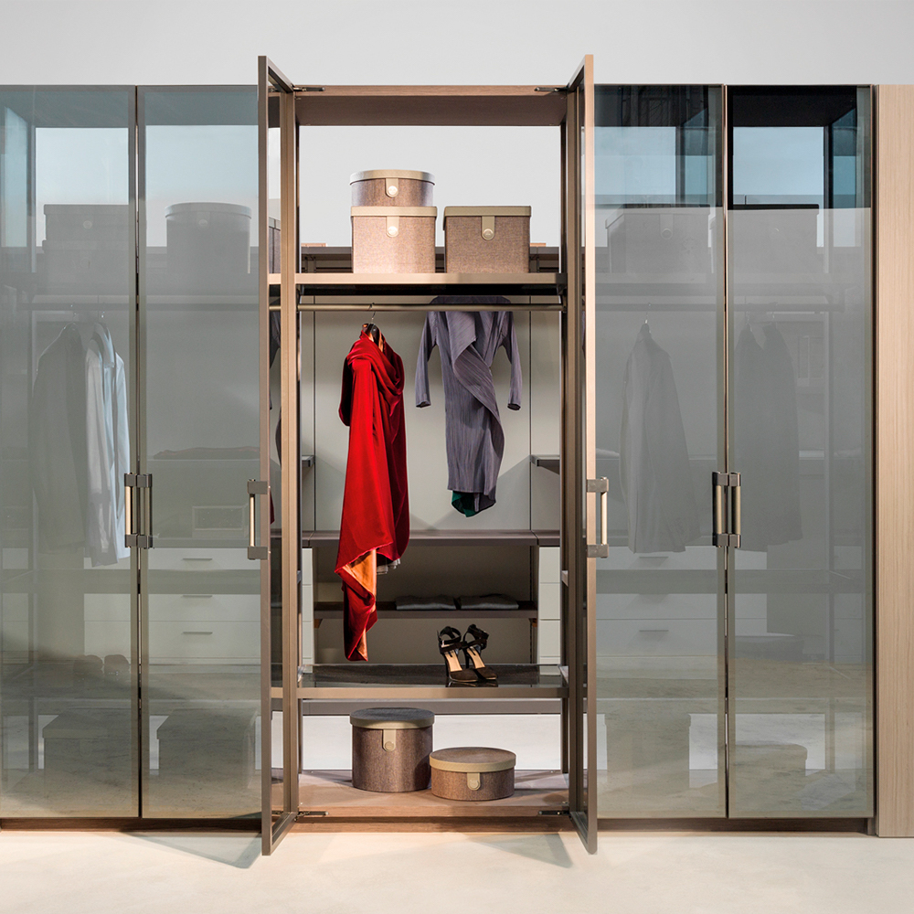 Crystal Case, a refined closet and storage system from Ornare, blends versatility with visual lightness, featuring transparent glass, slim aluminum profiles and integrated lighting. Designed to elevate closets, cabinets and open shelving, the Crystal Case transforms storage into a true showcase. Its sleek lines and seamless doors have no visible hinges, and deliver both function and understated elegance.