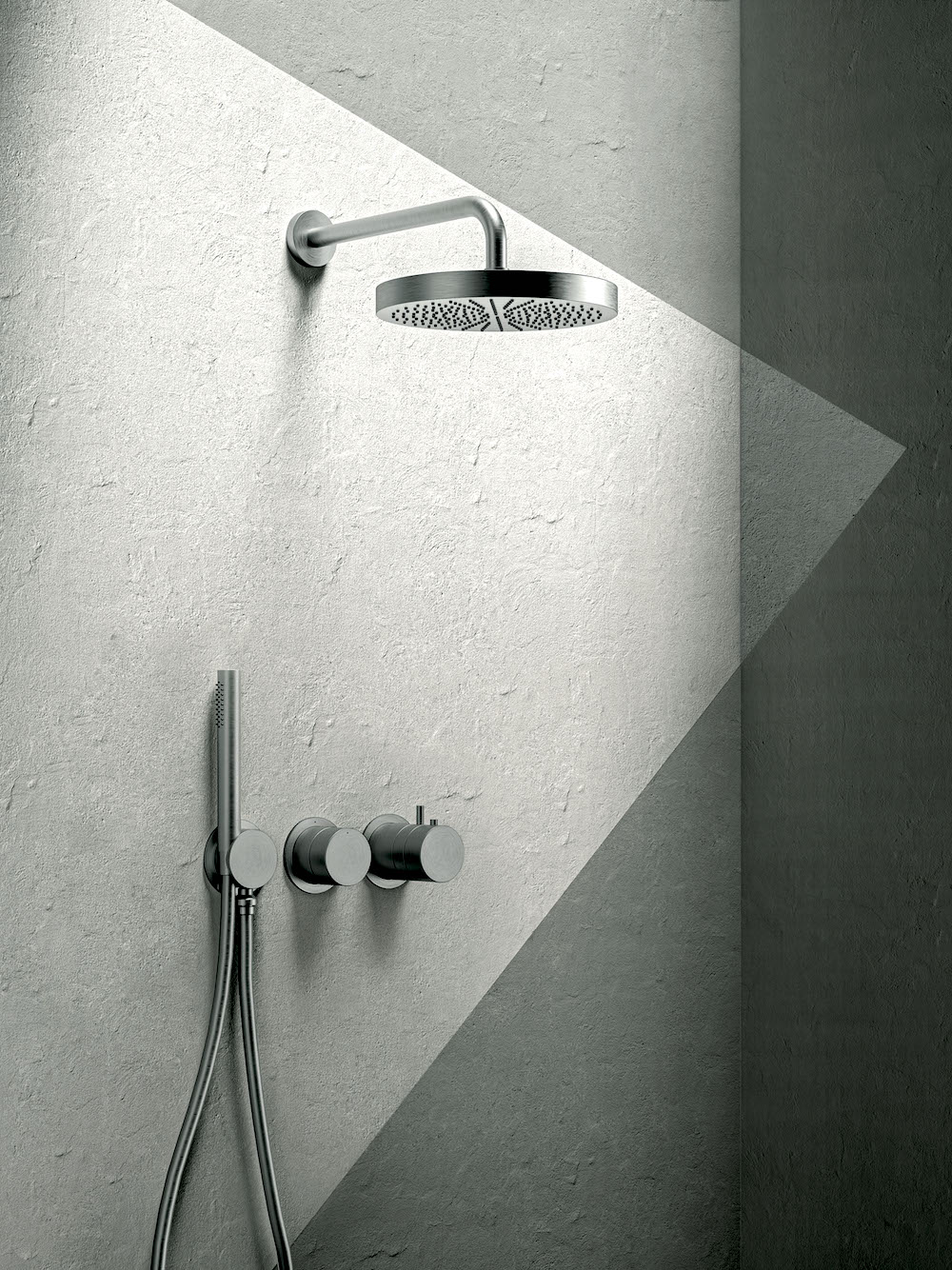 The Ex.Series, part of the Boffi catalog, will now be added to the Aboutwater by Boffi and Fantini collection. It includes Pipe by Marcel Wanders, AL/Garden by Piero Lissoni, and AC/Eclipse by Studiocharlie. Pipe and AC/Eclipse feature stainless steel finishes, and AL/Garden is coated in a new PVD technology. AC/Eclipse includes a rain showerhead with built-in thermostatic mixer.