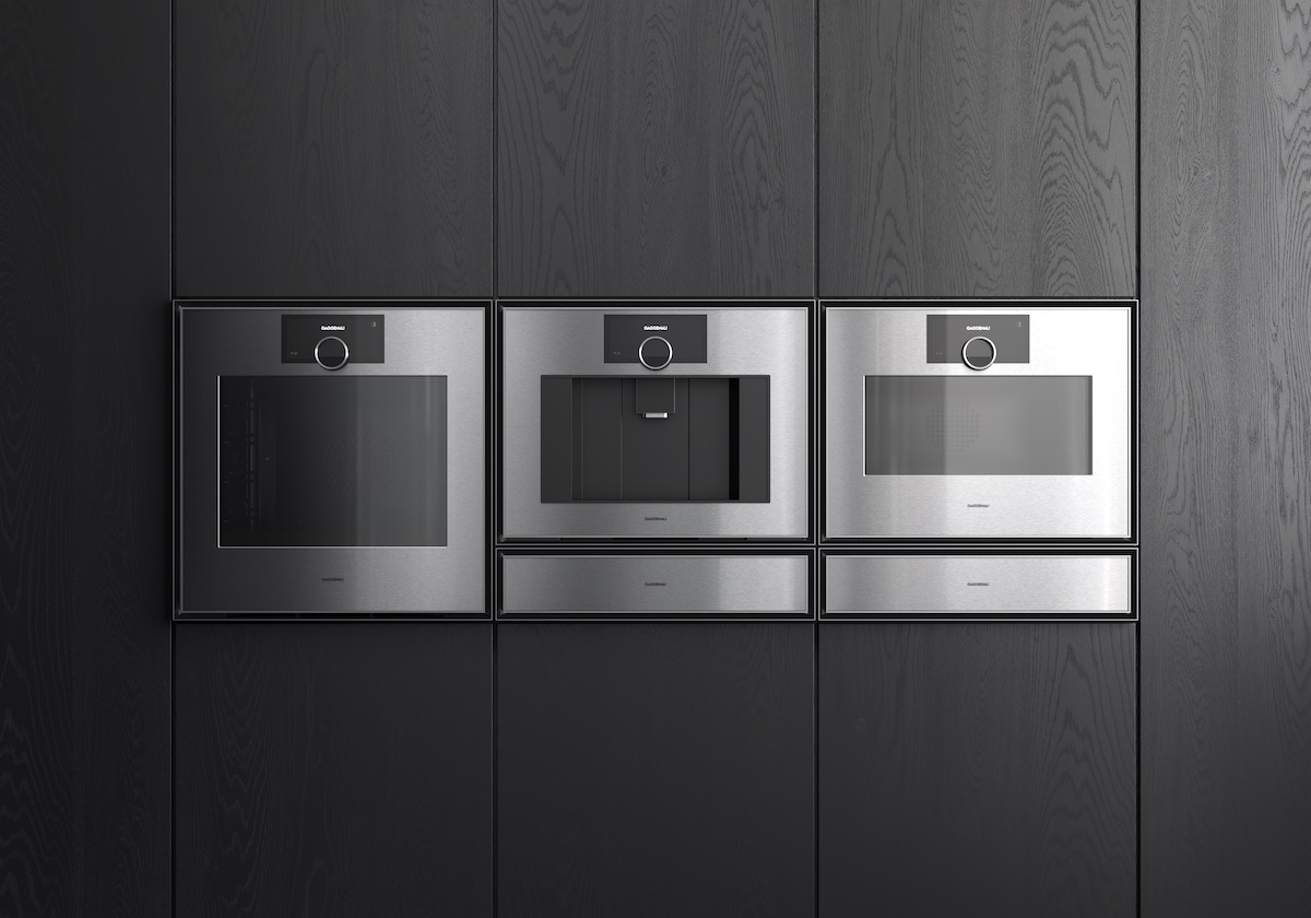 Gaggenau’s new Expressive series features a visual philosophy of “two frames, one circle.” The outer architectural frame grounds the appliance in space; the interior frame creates a dialogue between the smoked glass and hand-finished steel. At the center, a floating stainless-steel ring responds with subtle haptics, adding a sensory touch to the digital realm.