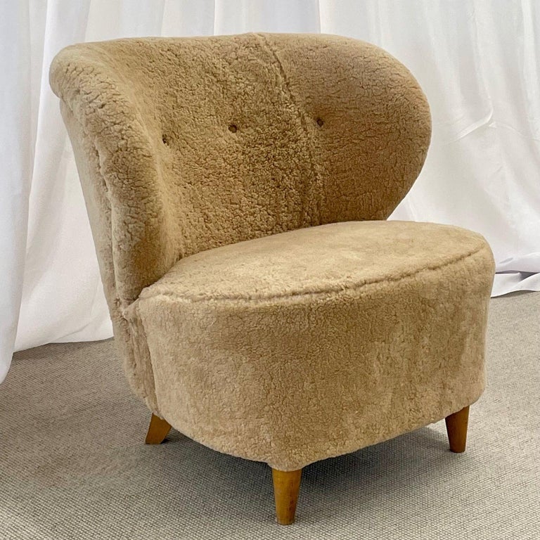 Image 3: Pair of Mid-Century Modern Swedish Slipper Chairs by Sven Staaf, Sheepskin, 1950s
