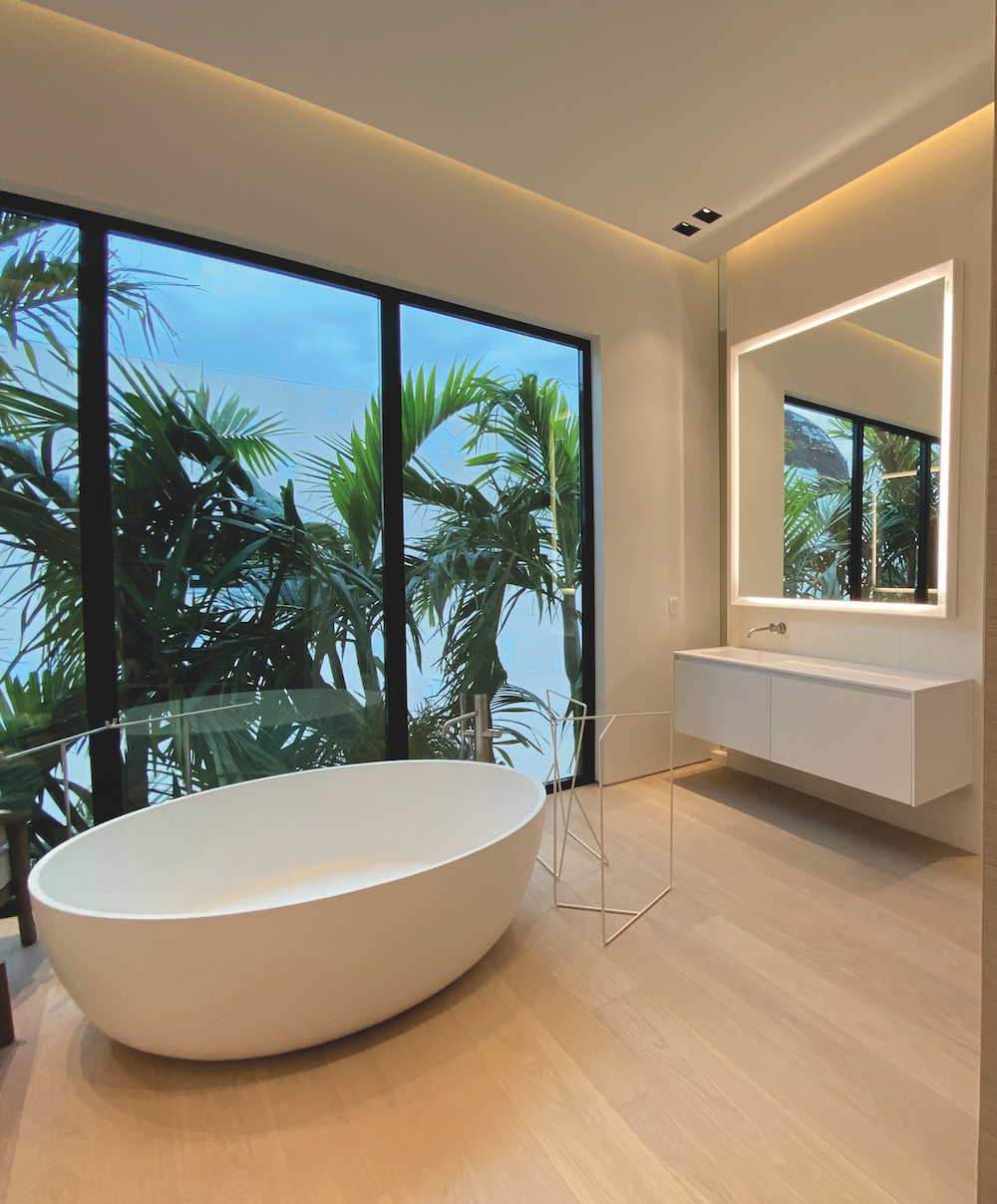 In a Miami Beach bath designed by Valeria Torriani, Oak Montblanc floors are complemented by Fabrique Corde, designed by Marc Sadler. Listone Giordano was founded in 1870, and they continue to deliver the highest quality, premium wood floors, with a focus on promoting sustainable forestry.