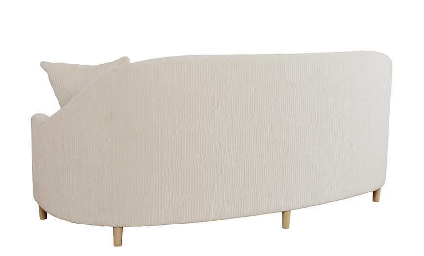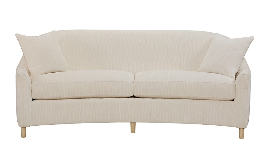 Inspired by nature’s calming curves, the Radil Sofa from Mr. and Mrs. Howard has a graceful crescent-shaped front, which gives the piece a lovely, sophisticated look. The sofa features two loose seat cushions, a tight back, and exposed wood legs.