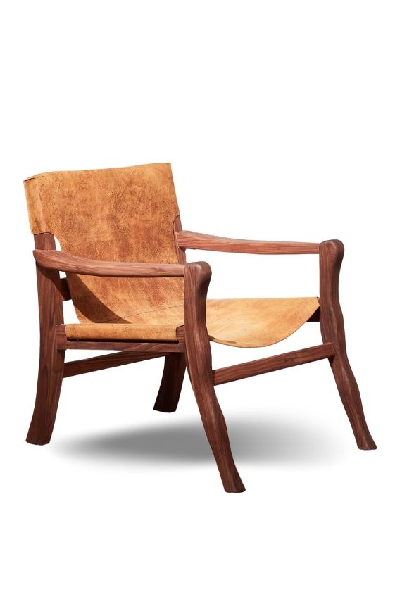 Inspired by the cool shape and coloring of a Martin guitar, the simple organic shapes of the Sling Chair from Whittemore Sherrill make it a complete vibe. The legs and arms of the chair are hand crafted using a smooth walnut, sealed with a beautiful natural finish.