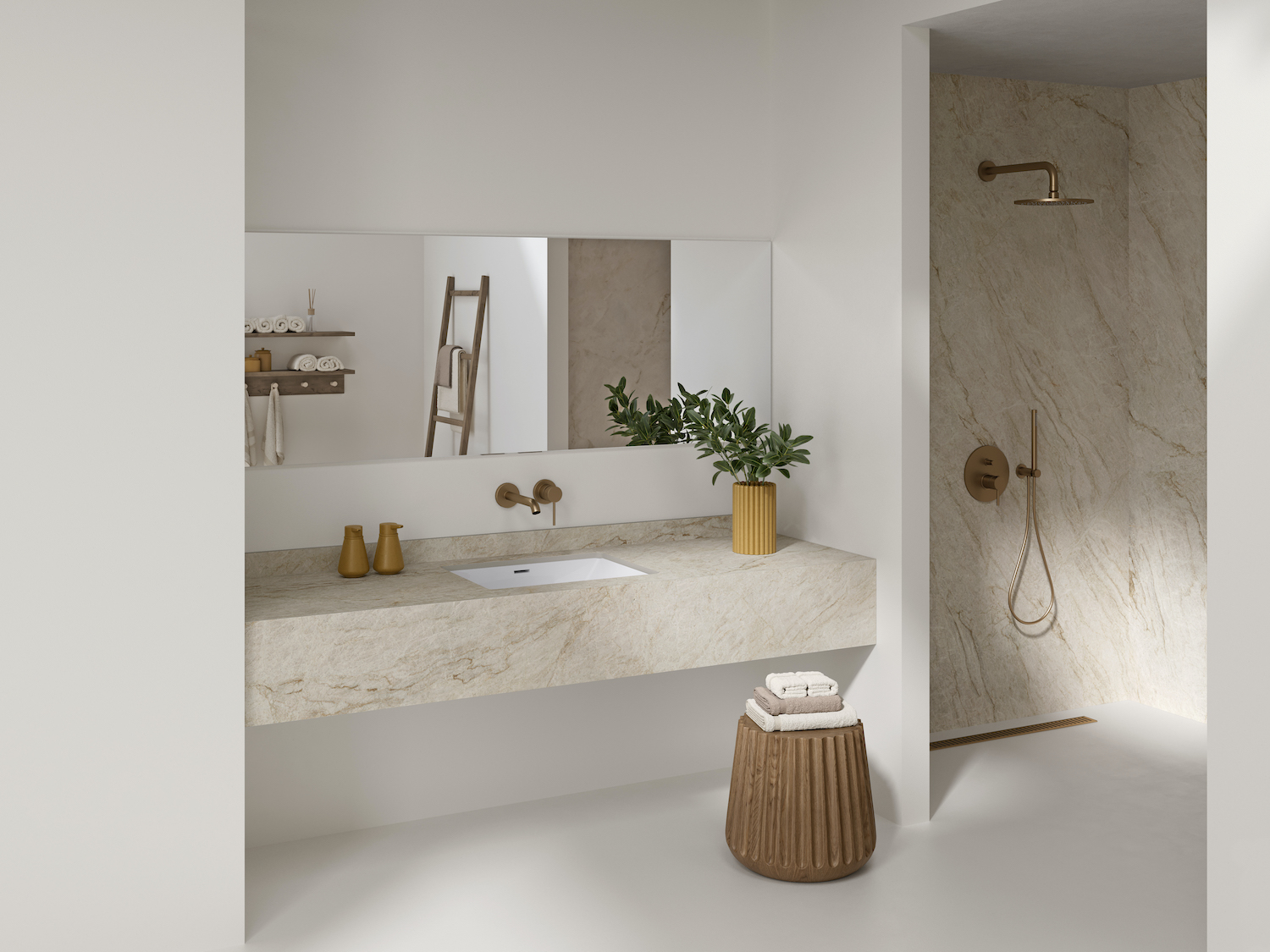 Neolith Crème embraces refined simplicity, featuring a uniform, timeless tone inspired by pure sandstone, ideal for creating intimate and inviting atmospheres.