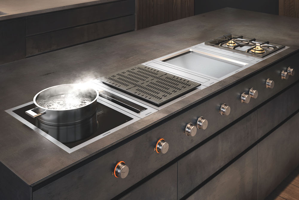 German-based brand Gaggenau has once again revolutionized the kitchen with its Vario 400 Series Downdraft Ventilation. With a flexible design and sensory technology, this collection improves the cooking experience by reducing noise, optimizing air management, and eliminating unfavorable odors.