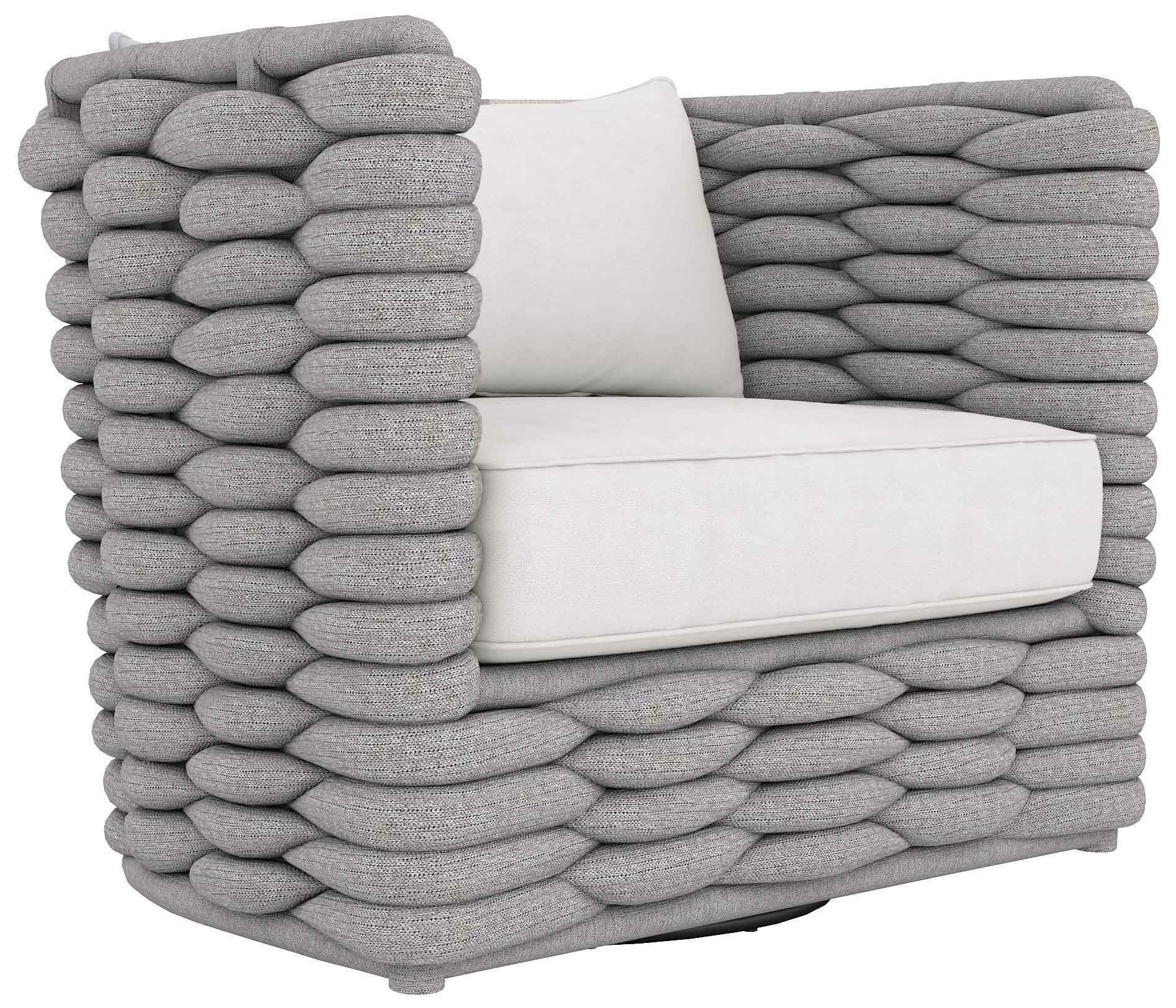 The Wailea Swivel Chair and the natural stonecast Millim Bunching Table are surprisingly suitable for both indoor and outdoor use.