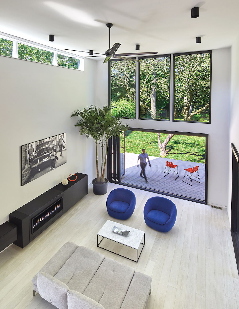 In a residence by KUBE Architecture in Silver Spring, Maryland, West | Wood’s Winter Beach Color Collection flooring in Rustic Snowdrop with wire brushed texture provided the perfect palette for the design of the home. West | Wood can design a whole range of architectural surfaces, including walls, ceilings, stair treads, doors, cabinets and furniture.