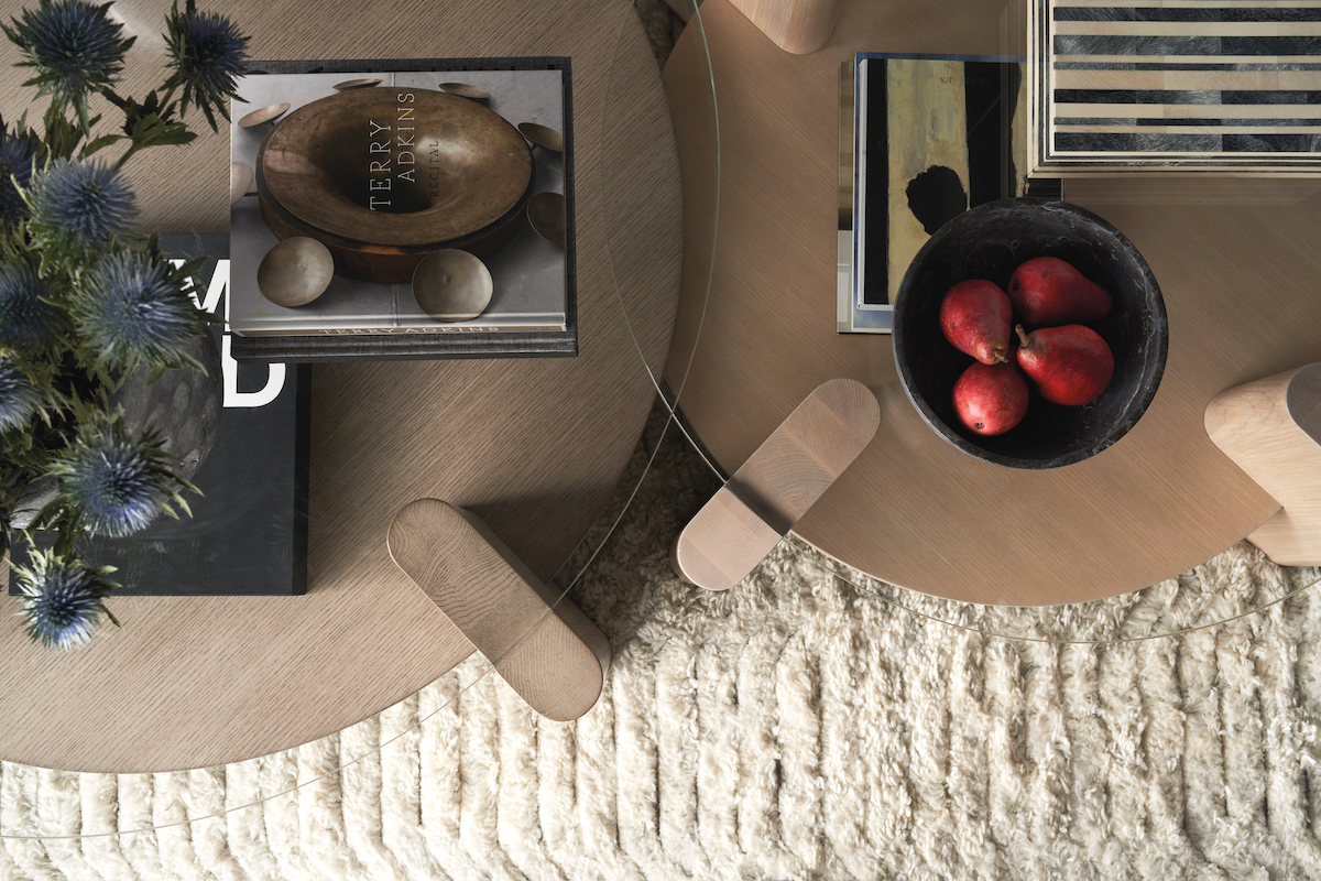 Wolcott Cocktail Tables & Matson Rug from the Thom Filicia Home Collection, available at Sedgwick & Brattle.