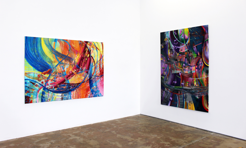 The exhibition splashes with bursts of flashing colors – some obnoxious, some refined, however, all the pieces express sublime sensory overload. Here in the adjacent, possibilities are unlimited with the artist’s visions, and the selected artwork is a stacked deck of imagination and extraterrestrial lands.