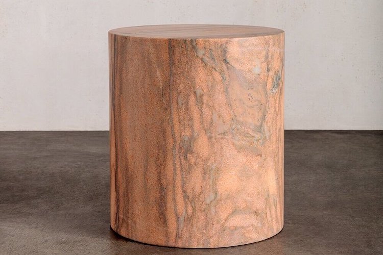 Hand-sculpted out of a block of solid marble, this simple, versatile design from Kelly Wearstler can be used as a seat, plinth, or an occasional table and is perfect for a shower or garden. The cylindrical form is an exceptional canvas to highlight the rich veining, deep texture, and smooth finish of the marble.