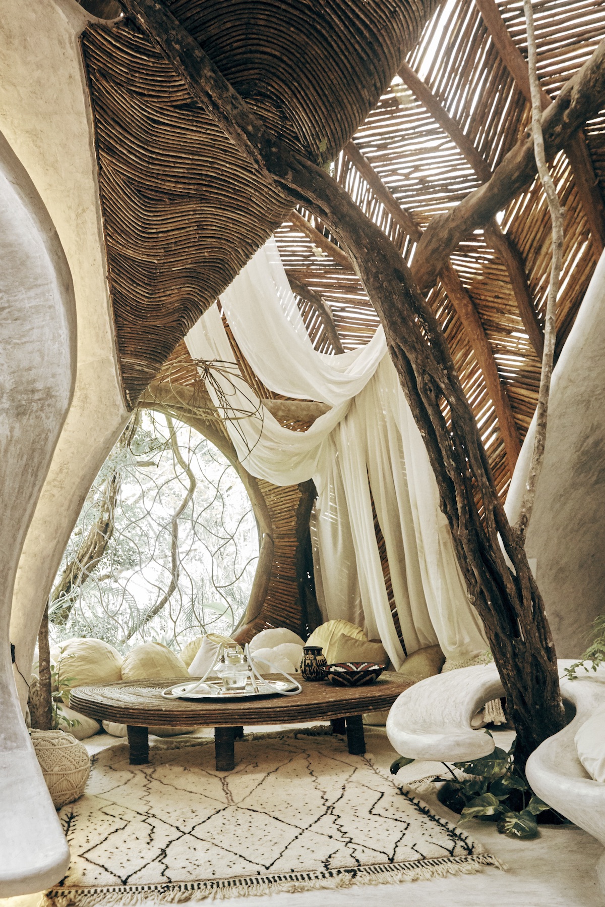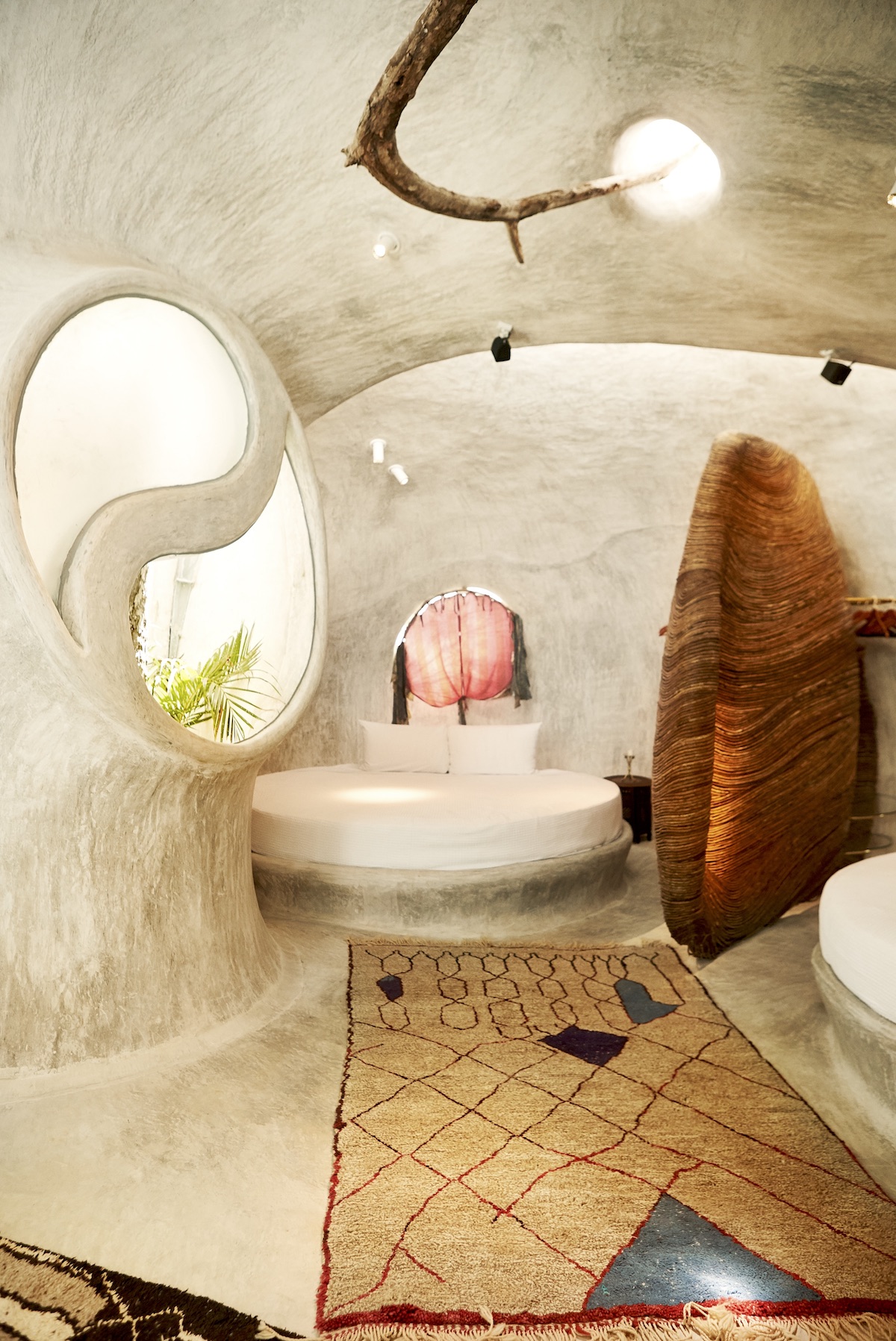 Angles are our way of righting the world. For the ordered mind, there’s nothing like a straight line. But irregularity is not always an impediment. Randomness and chaos are not synonyms. And nature is not to be solely conquered or feared. For Eduardo Neira, going with the flow is a respectful response to the earth as one finds it. Working around a bolder, tree, or stream is not architectural abdication but an embracing of possibility. At AZULIK, his compound in the Mexican state of Quintana Roo, Neira – who goes professionally as ROTH – enters fully into a dialogue with the landscape, speaking distinctly but listening even more.