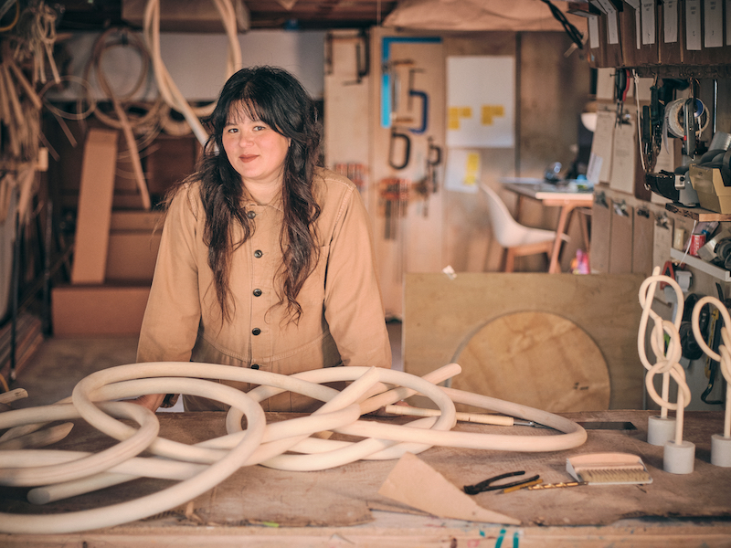 Gong is known for her steam-bent wooden sculptures, but in the Knot Series, her unique process is reimagined into a multi-step process to bring her signature shape to durable, brass hardware.