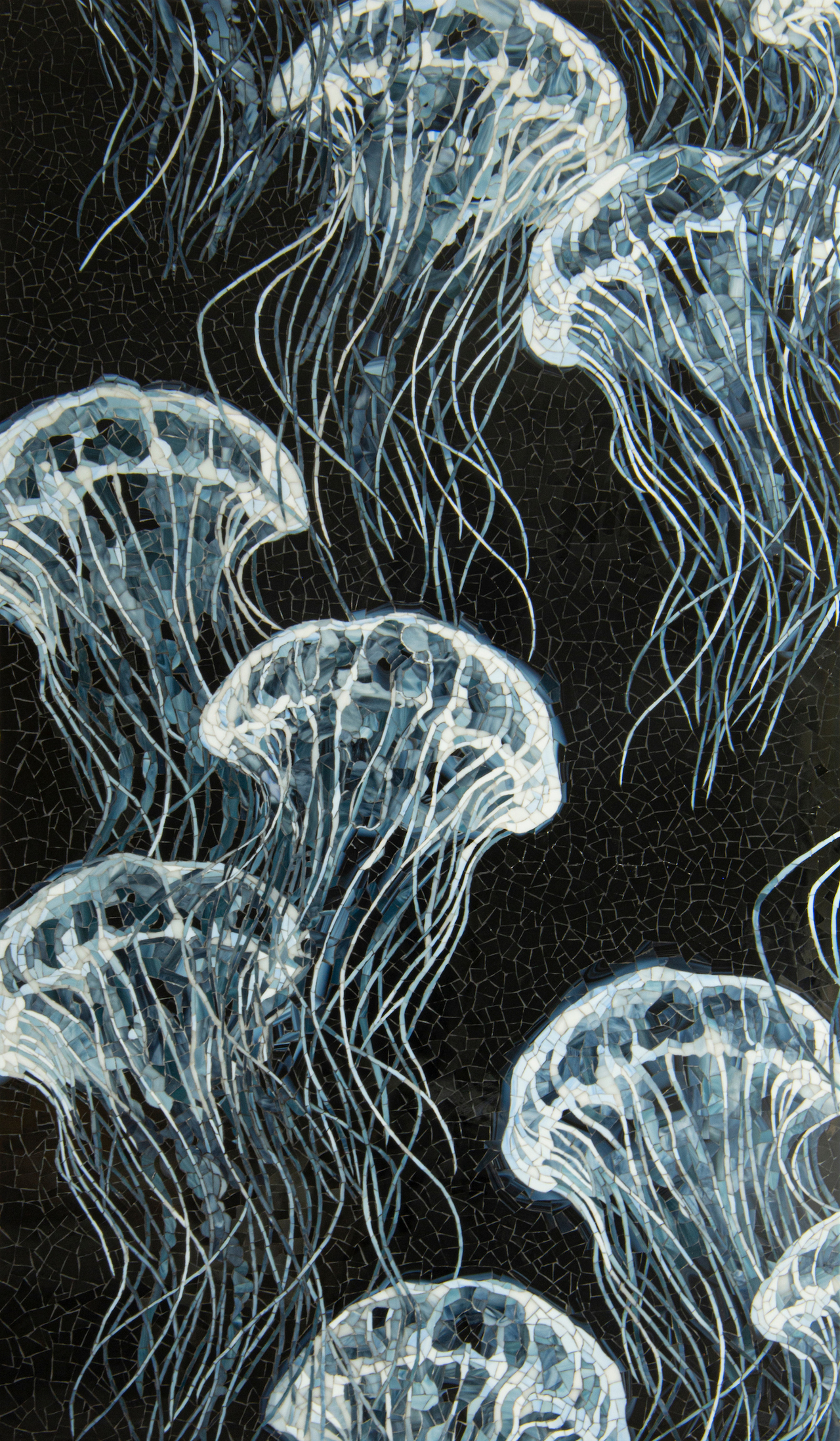 “This panel was inspired by the Chesapeake Bay. Growing up on the water, I encountered many jellyfish, but they never held me back from jumping off a boat or a dock. Here, I decided to take a fascinating creature that can be painful and turn it into something beautiful.”