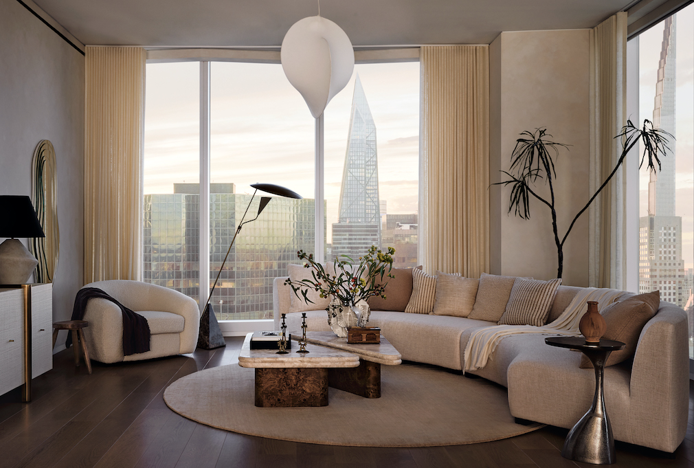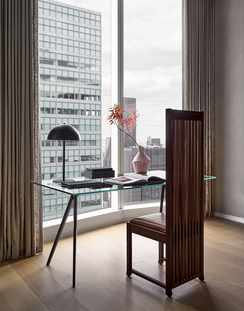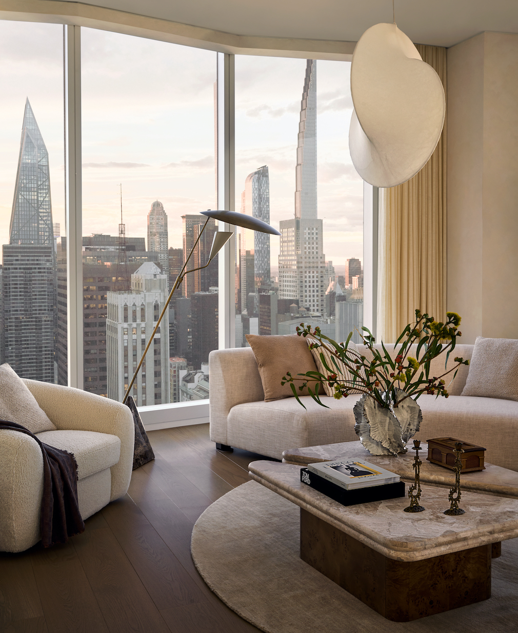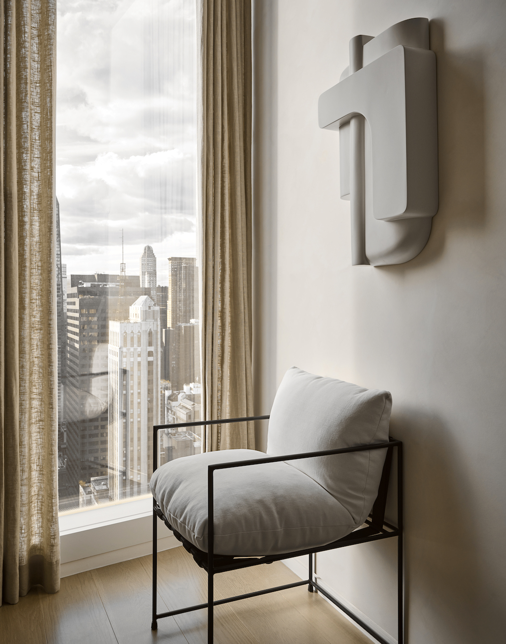 “I was tasked with designing a home for a couple who frequently travel overseas and make New York their temporary base, sometimes just for one night. With such a demanding lifestyle, they envisioned spaces that exude calmness and sophistication; a home that’s perfect for entertaining both friends and high-profile clients in the heart of the city. My goal was to create a refined, tranquil environment that feels like an extension of the city’s dynamic energy yet offers a peaceful sanctuary. The idea was to blend European elegance with the modern convenience of a high-rise, making the apartment feel personal and aspirational at once.”