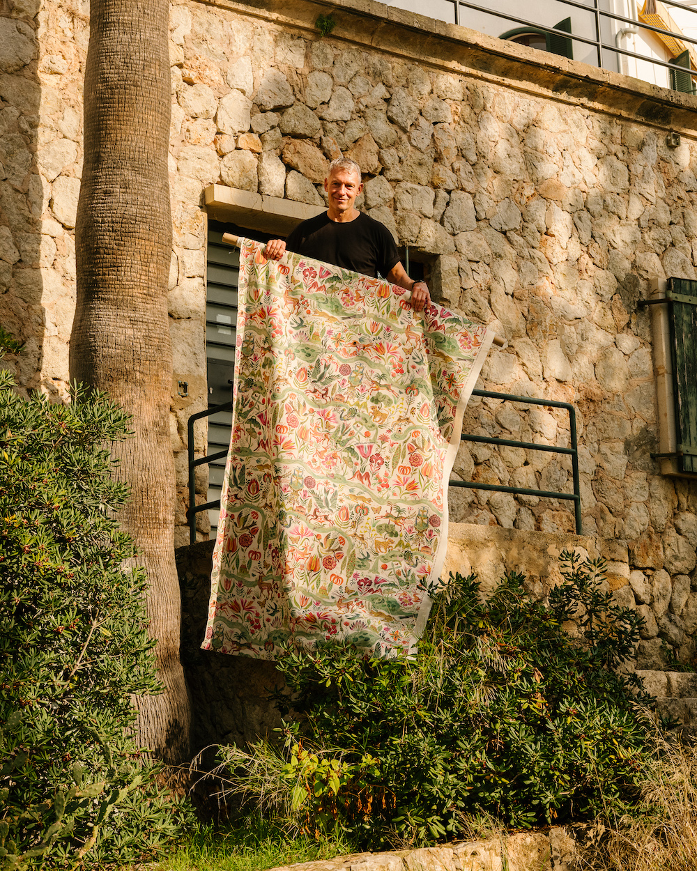 German painter and illustrator Olaf Hajek has created ad campaigns for the French department-store chain Printemps, holiday windows for Hermès, candle graphics for Diptyque and porcelain vessels for Meissen. Now, he has collaborated with Christopher Farr Cloth on a collection of four wallpapers and two printed linens, the first time his designs have been translated into textiles.