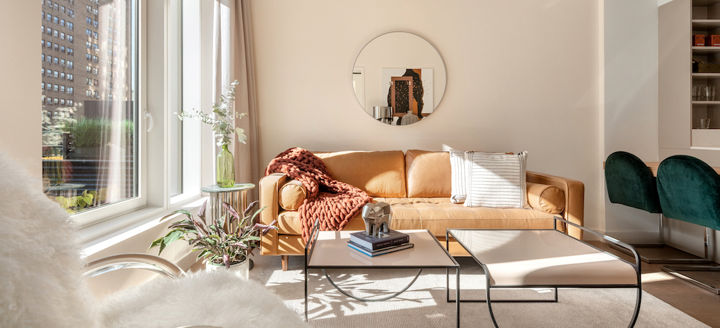 In one of New York City’s coolest neighborhoods, the newest addition to the dynamic Essex Crossing development — One Essex Crossing — has come online, with a new model apartment designed by Jean Lin, founder of Colony, a design gallery celebrating American artisans on Canal Street. The 14-story building, designed inside and out by acclaimed architecture firm CetraRuddy, spans a full city block between Broome and Delancey Streets, and features light-filled residences with skyline views, relaxing outdoor spaces including a 9,000 square foot terrace garden, and a portfolio of amenities. “We were inspired by the rich architectural language of the existing fabric of the historic Lower East Side and the next chapter of its artistic, cultural and forward-thinking community,” explains Nancy Ruddy, Founding Principal of CetraRuddy. “The three-dimensional layering of brick, terracotta and glass weaves texture into the facade, harmonizing with the neighborhood while paying homage to the past and the present.”