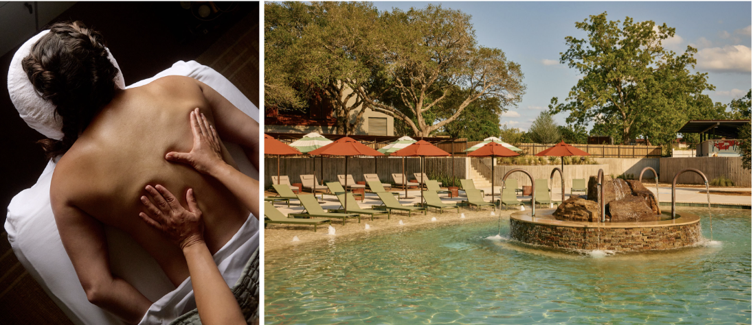 Design aside, the restorative qualities of the waters are well-documented. Their healing legacy dates back to 1909, when a 107-degree artesian spring with a depth of 1,554 feet was discovered. By the 1930s, a foundation had been established, and the spring’s healing properties were utilized to provide relief to children with polio. Today, the artesian well that provides the source taps just as deep into the Carrizo-Wilcox Aquifer. The Ottine Mineral Springs’ pools are laden with a naturally high alkalinity — featuring a pH of 8.37, with high levels of bicarbonate and sodium, and naturally occurring minerals such as magnesium, chloride, sulfate, carbonate, along with a substantial amount of trace minerals. A soak in any of the pools imparts a silky, soothing sensation on the skin. The combination of magnesium, sodium bicarbonate and salt alone helps ease muscle tension, reduces joint pain, improves circulation, and supports skin health by helping maintain its natural balance. Salt naturally enhances buoyancy, contributing to a feeling of weightlessness that eases pressure on pain points. Soaking in the springs is a truly inspiring way to promote relaxation, relieve stress, and enhance sleep through mineral immersion.
