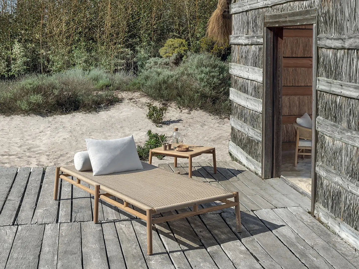 Ethimo and Marcello Ziliani reinterpret the textural characteristics of the Kilt lounge and dining proposals to give shape to a new maxi furnishing piece designed for moments of relaxation outdoors. Teak frame with natural rope.