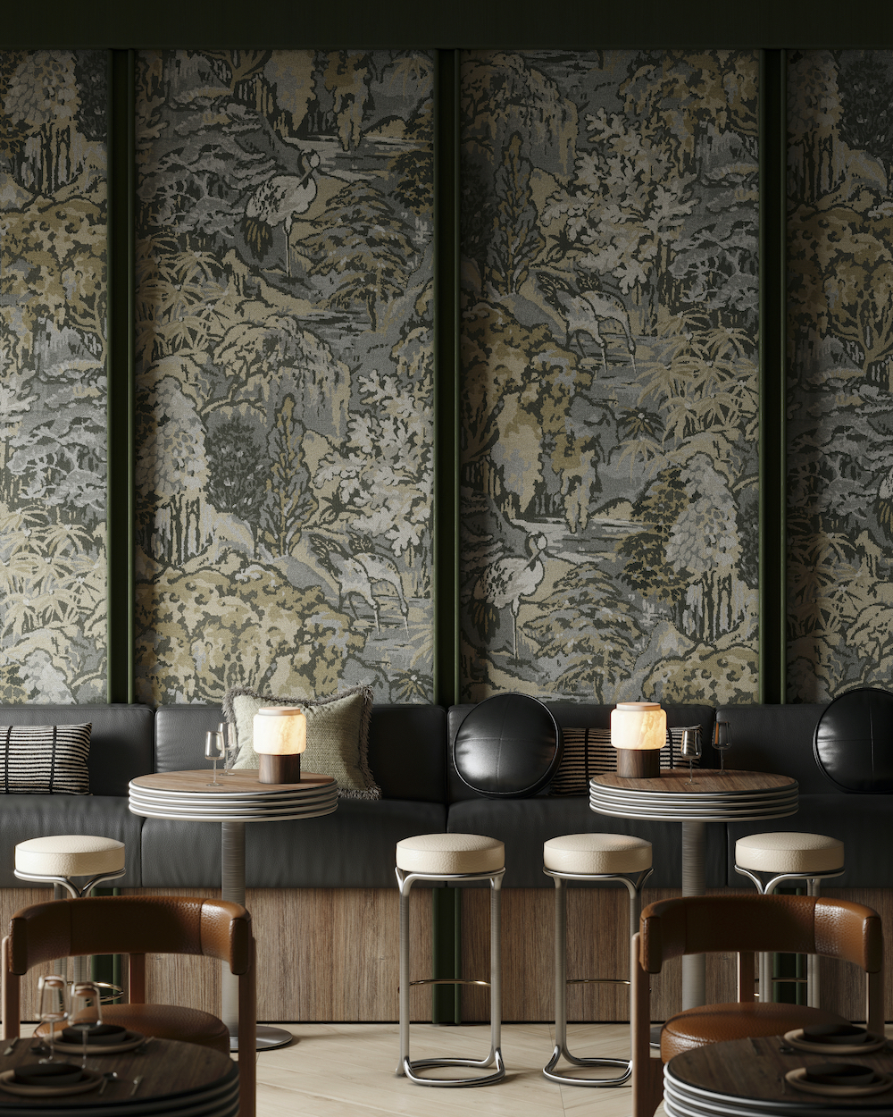 Old and new beautifully blend with Arte’s Les Tapisseries collection, which is an ode to 14th through 18th-century tapestries. “Each design is inspired by a classic, centuries-old tapestry that has been reimagined and revived through a contemporary lens,” shares Frederick Decoopman, head of design for Arte. “Each brings warmth, texture and color while serving as captivating conversation pieces.” The Belgium-based company employs its uncompromising quality and innovative craftsmanship to bring a dimensional depth to the collection’s five panoramics and five large-scale repeats.