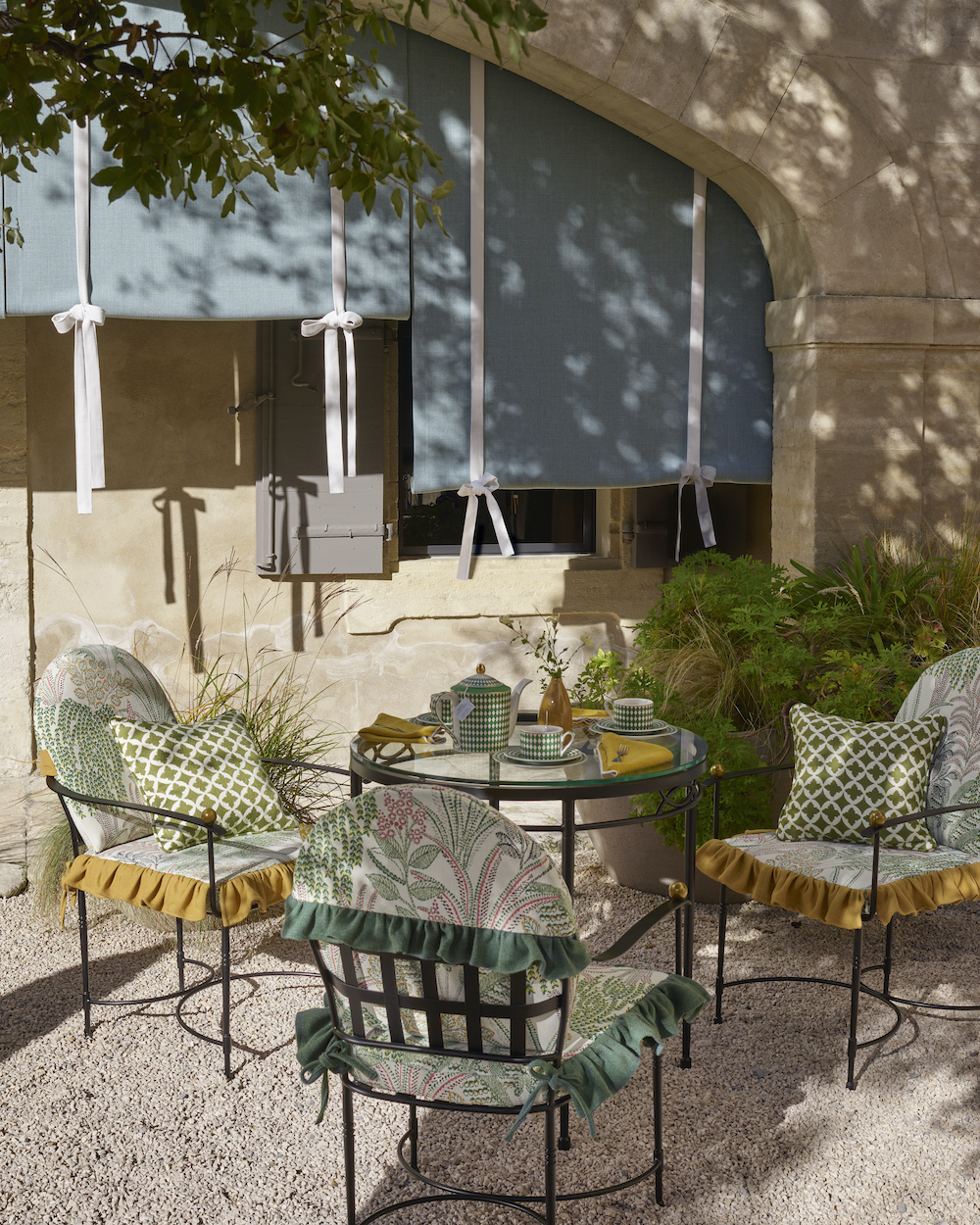 While we love to pore over fabric swatches, there’s nothing quite like seeing a new textile displayed on furniture. That’s exactly what made Manuel Canovas’s partnership with outdoor furniture brand JANUS et Cie a design-minded delight. “We were thrilled to collaborate with the distinguished fabric house for their spring launch. One of our most iconic and recognizable collections, Amalfi, was a natural complement and looked absolutely stunning in their Paris showroom.” On view: Canovas’ Zila, Corti, and Panama patterns, indoor-outdoor textiles that, together, offer whimsical pattern play.
