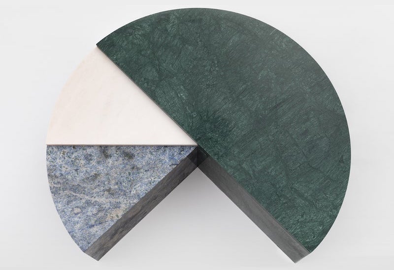 Piece o’ the Pie is a coffee table whose design evolved with the same principles of play explored in designer Jonathan Zawada’s previous Affordances series. Alluding to the graphic of a pie chart, its form is built from carefully considered combination of stones that uses a unique three-piece slotting system.
